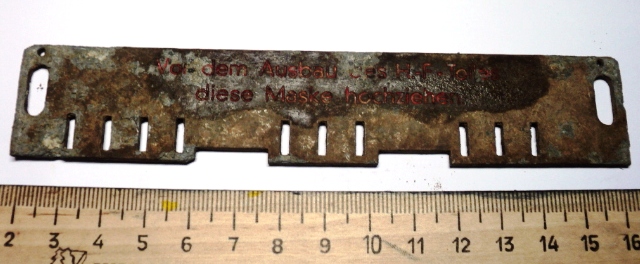 Материал цинк. Надпись красного цвета: vor dem ausbau des h-f - teiles diese maske hochziehen От чего?