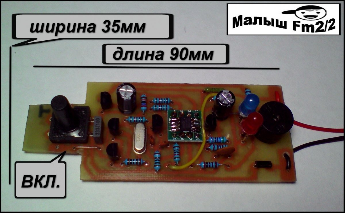 Портативный микропроцессорный металлоискатель Малыш Fm2 v2 различает металлы по типу цветной-черный, сигнализируя об этом загоранием соответствующего светодиода и разной тональностью звука. Малыш Fm2 v2 служит для более точного определения цели в выкопанной ямке после того, как ее обнаружили большим металлодетектором. Также им можно обнаружить, например, ваши потеряшки на пляже во время отдыха. Малыш Fm2 v2 является полностью микропроцессорным прибором с минимальным набором управления-кнопка включения без фиксации.Также имеются два светодиода, синий сигнализирует о наличии черного метала вблизи датчика, красный- о цветном. При старте контроллер измеряет напряжение батарейки, и если оно ниже 5,5 V, то быстрым миганием светодиодов и звуковым сигналом контроллер сообщает о необходимости заменить батарею металлоискателя на новую. Также, если вы случайно забудете выключить пинпоинтер, то он раз в 2 минуты будет курлыкать), напоминая о необходимости выключить питание. Характеристики пинпоинтера Малыш Fm2 v2 Рабочая частота 18-22 кГц Напряжение питания -9 вольт(Крона) Потребление прибора- без звука -7-10 мА в режиме обнаружения-14-22 мА На плате установлена кнопка включения пина без фиксации. РАЗМЕРЫ платы— 90 х 35 см ВИДЕО - Основные характеристики чувствительности к цели: 5 коп(ссср) — 2.5-3 см 50 коп(ссср) — 2.5 см 1 коп (ссср) — 1.5 см Кольцо(золото) — 2.5 -3 см Значек (4 см) — 4.5 см Магнитола(авто) — 5-8 см Цена - 350 грн. Оплата - предоплата на карту Приват(можно частично-100грн предоплата,остальное при получении) Пересылка на покупателе. Гарантия на плату 1 год. моб. 096 580 55 44 (Киевстар) 099 767 31 82 (МТС)