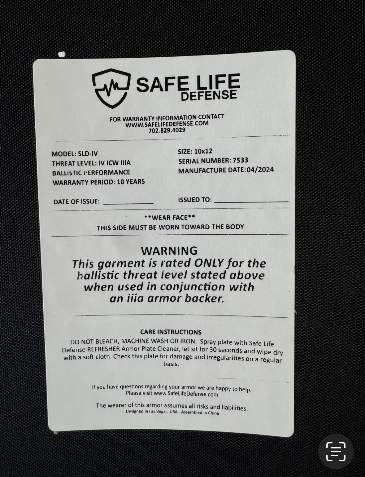 Hard Rifle Plate Level IV ICW Захист NIJ рівня IV Виготовлений з Al203 + поліетилену надвисокої молекулярної маси Товщина 18 мм Вага 5,8 фунтів(2.6 кг) Розмір 10х12 https://safelifedefense.com/shop/hard-rifle-plate-level-iv-icw/ Ціна 12000 грн за комплект плит