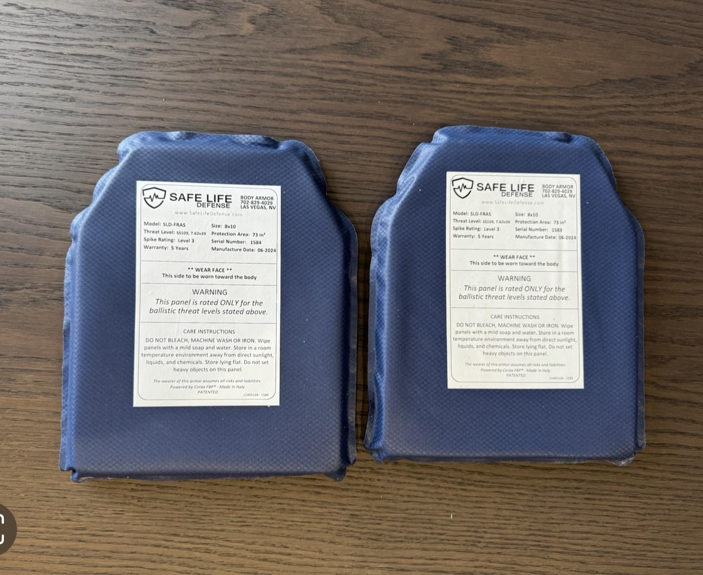 FRAS Level III+ Standalone Plate На дотик схожа на м’яку броню Захист: ця пластина 10×12 забезпечує рівень захисту III+ від .308 і 7.62x54r! Це також включає M193 і SS109. Вага: 4,74 фунта (2.15 кг) Товщина: 2.8 см Надзвичайний комфорт: легко носити протягом 12+ годин https://safelifedefense.com/shop/fras-level-iii-standalone-plate/ Ціна 24000 за одну плиту (в США 29000грн)