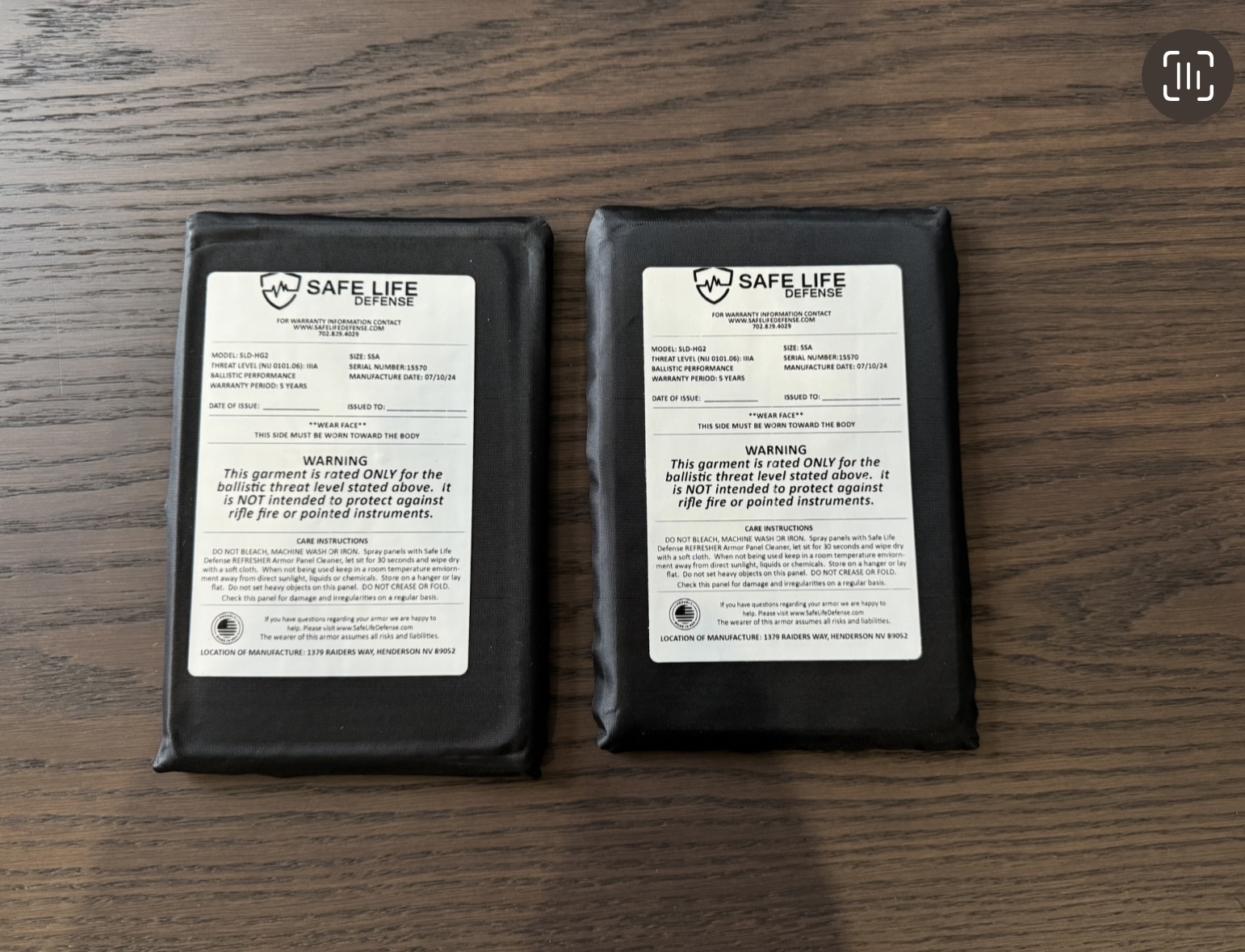 HG2 Side Armor Panels 5″ x 7″ Level IIIA/HG2 Ця бічна броня HG2/рівня IIIA захищає від пістолетів калібру до .44 Magnum, рушниць калібру до 12 калібру і порізів. https://safelifedefense.com/shop/hg2-side-armor-panels/ Ціна за 2 шт 2400 грн