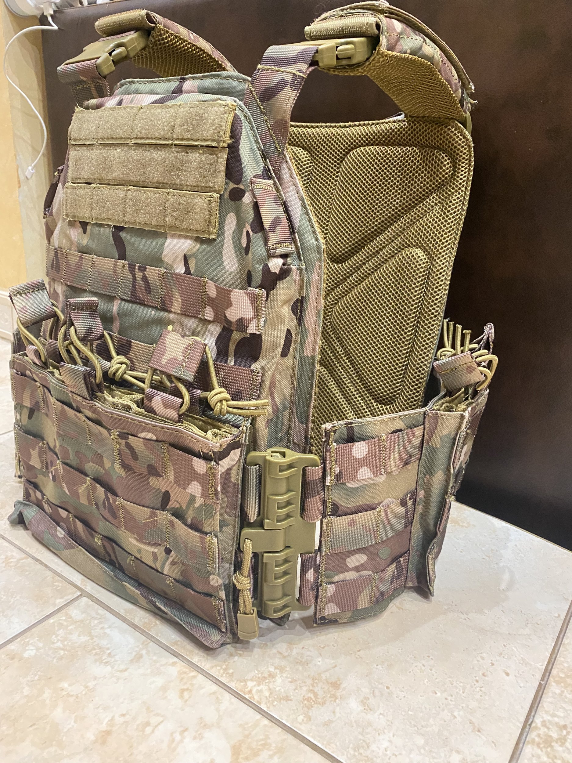 Качественная плитоноска в мультикаме. Материал 1000D. Материал не светится в ночнике. Девять автоматных Подсумка и четыре пистолетных. Система быстрого сброса. Цена 6200. Отправлю без предоплаты.
