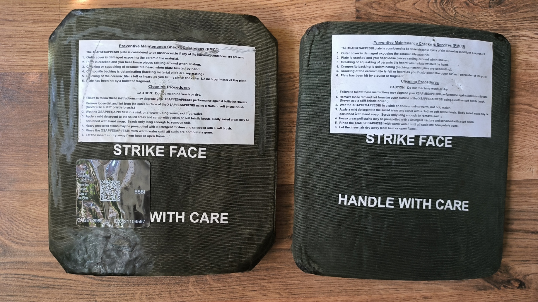 20х18 см 1.1кг плита Хорошее состояние, плиты полностью функциональные. Темное пятно это эпоксидка, скорее всего не аккуратная склейка обшивки. Это не повреждение керамики заклеено, керамика звонкая, не хрустит. Повреждение керамики таким образом не замаскировать, после повреждения она не будет звонкой и будут хрусты в любом случае. Это чисто косметический дефект. Можно в этом месте обшивку срезать и глянуть на керамику, а после эпоксидной обратно залить и использовать. Но керамика звенит! Могу в телегу видео снять, если нужно. 2900 гривен пара.