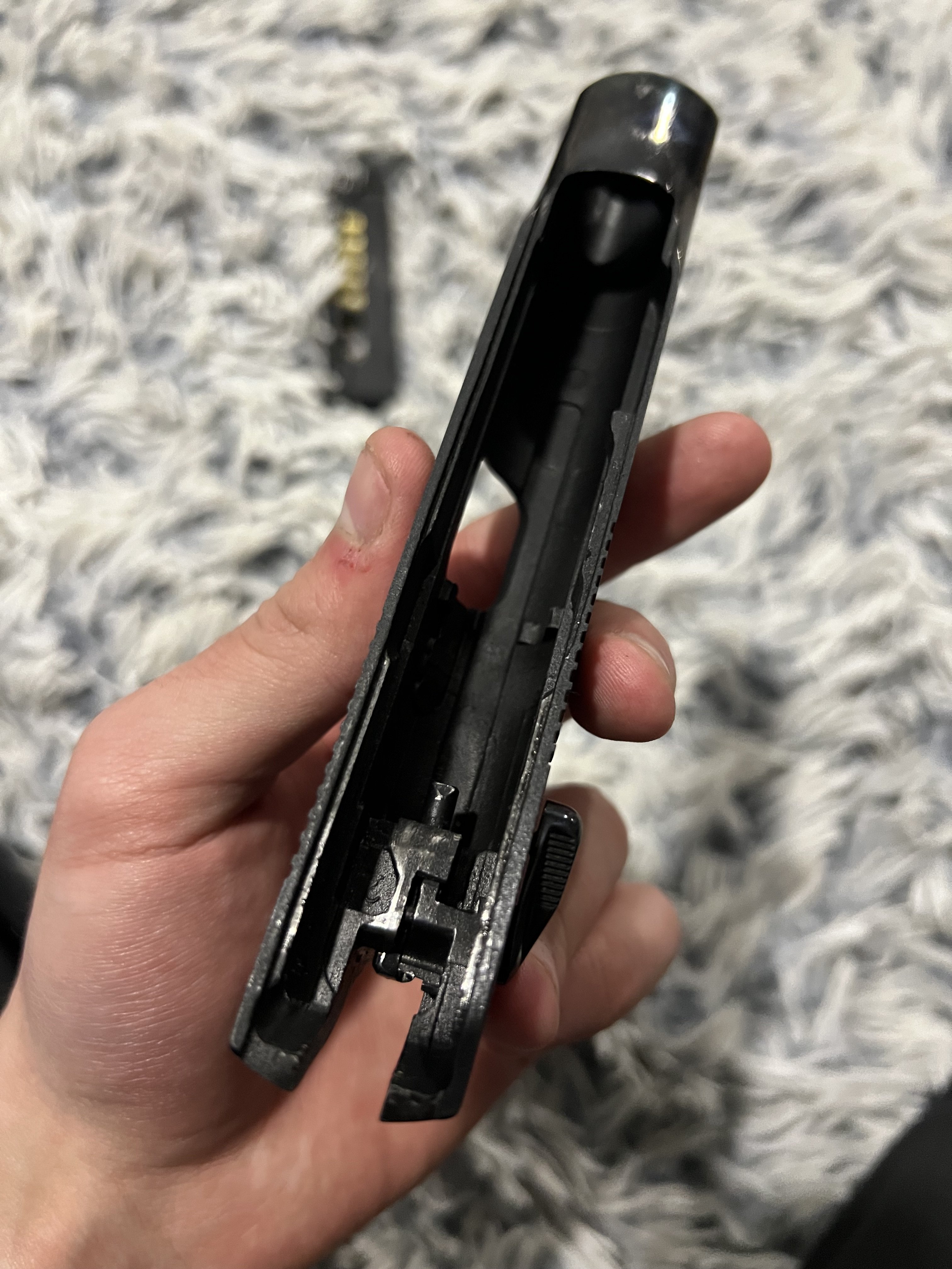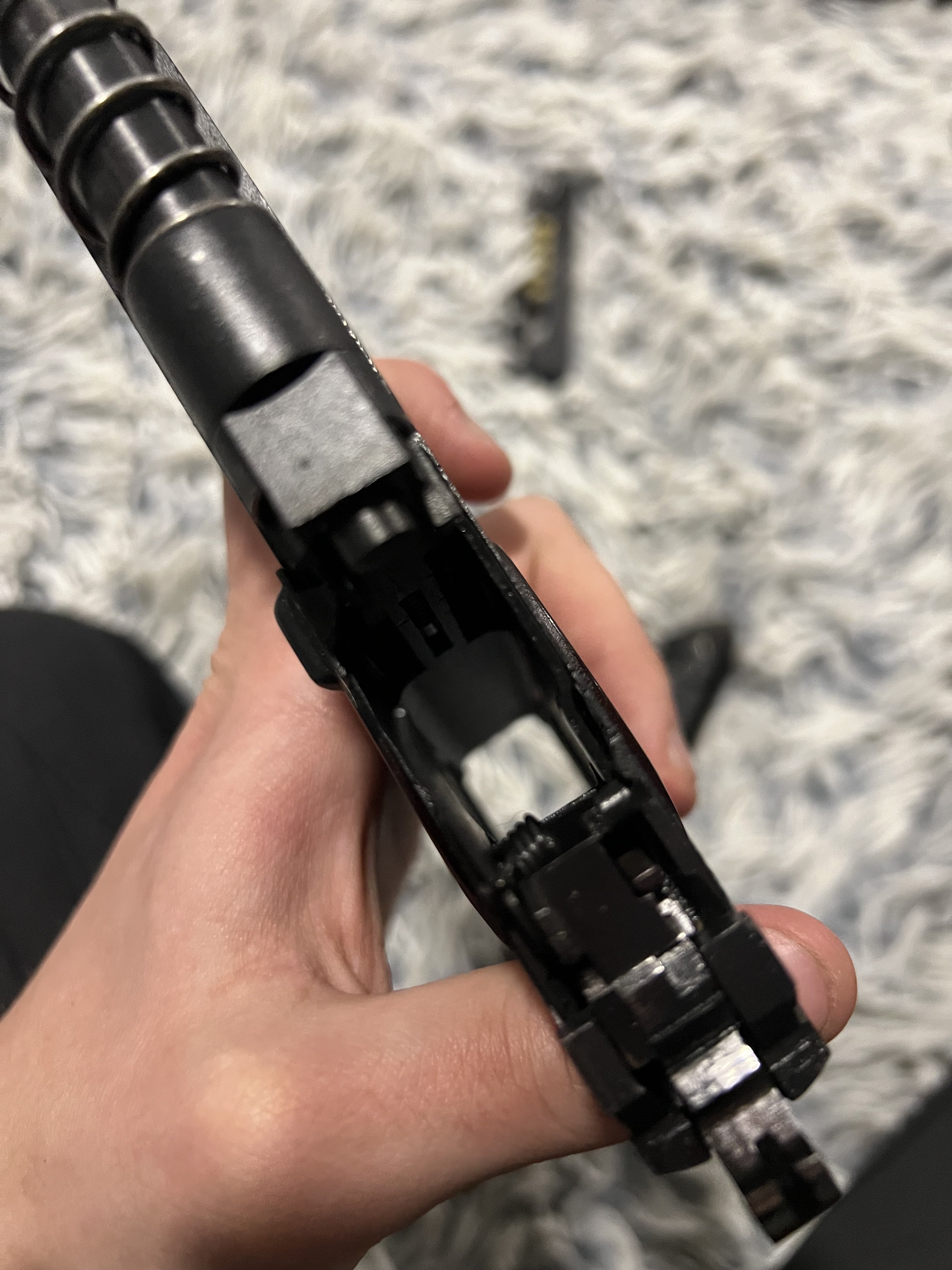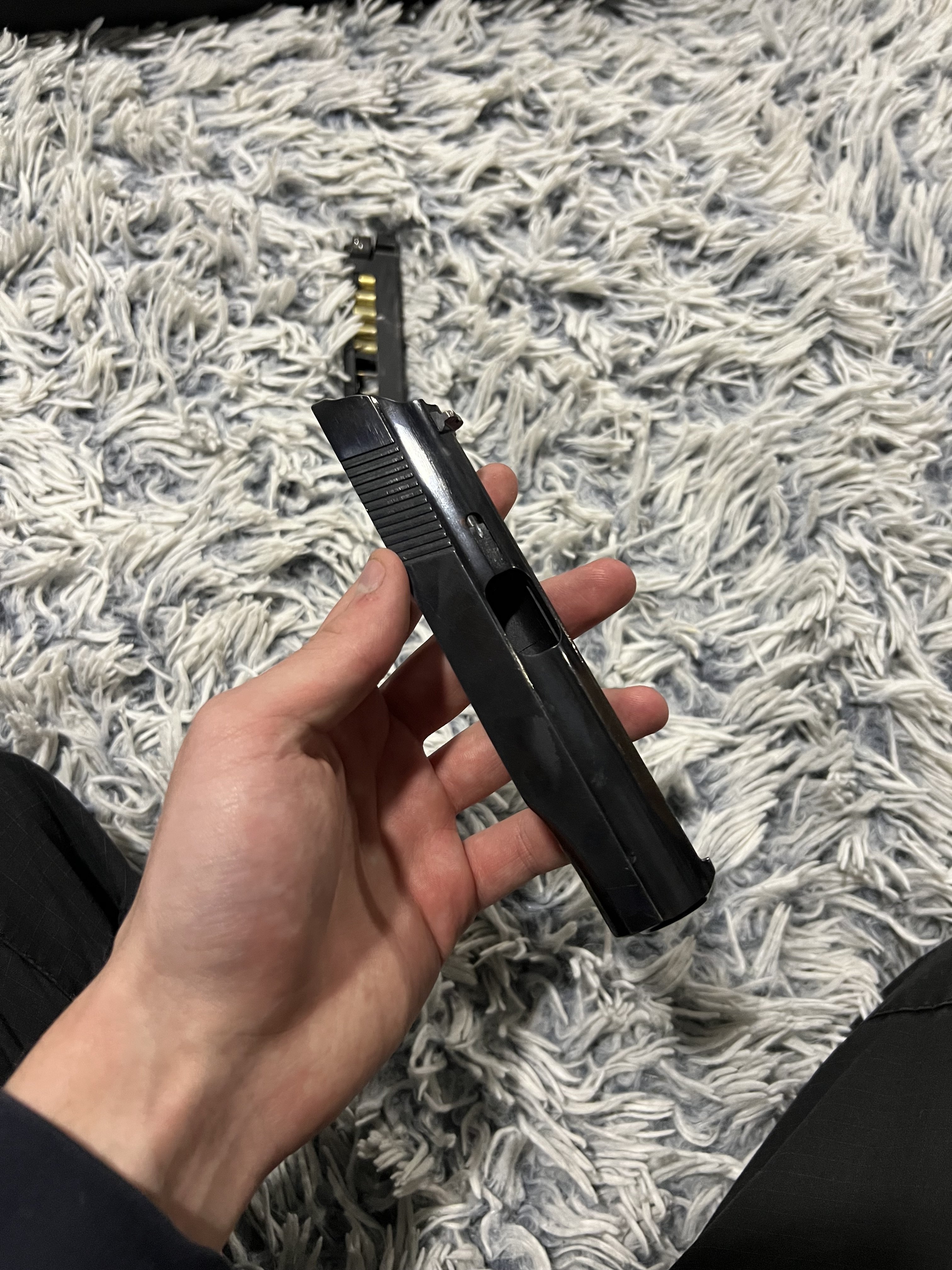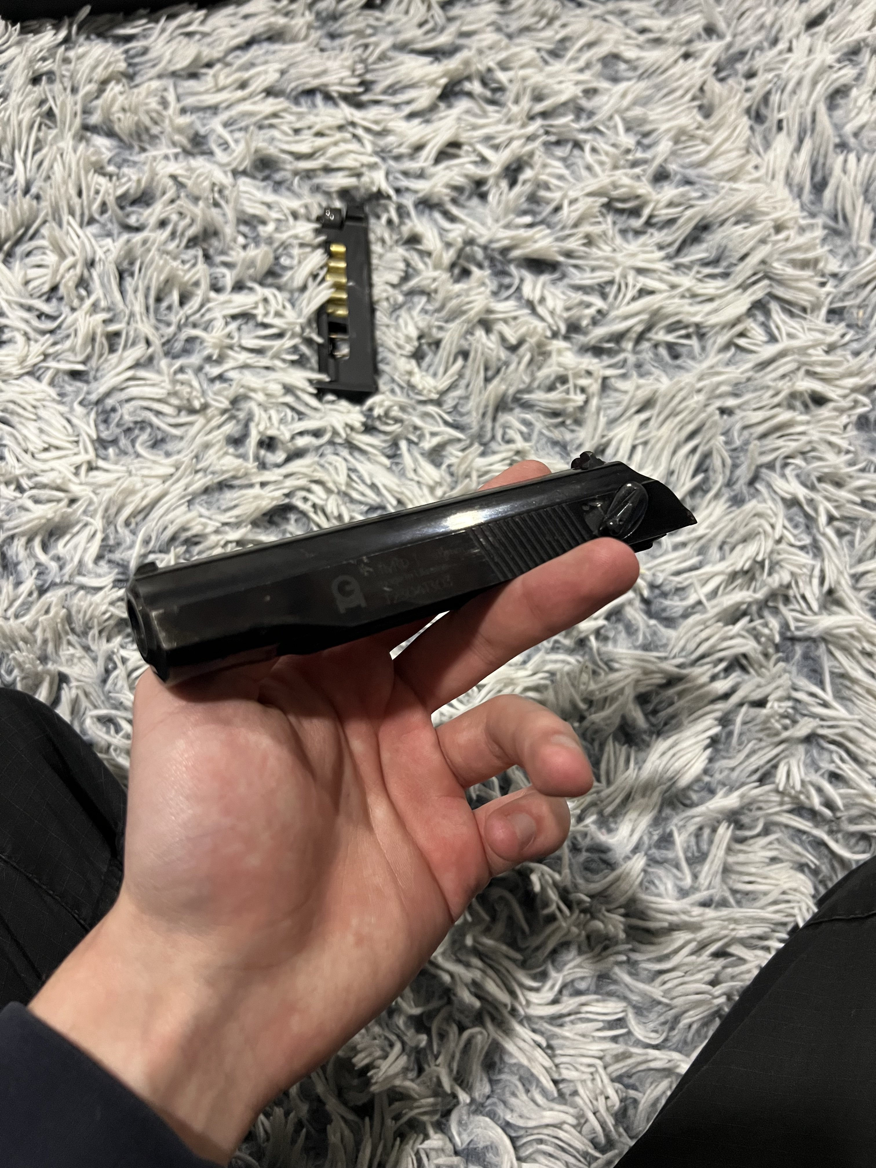 ЦЕНА 24000 торг Этот Пмф сделан под 32 серию, заводской новодел так сказать. рамка 20-28 серии с переделаними перемичками на рукоятке, узкими направляющими под затвор, литой , вырез окна выброса гильз прямоугольный настрел минимальный , сам пм с позних экземпляров тов «сэм» в заводском воронении, снятым пискоструем, в комплекте глушитель(подовжувач ствола) червоний зип, дута затворная задержка, магазин с имитацией гильз, все соответственно с завода, по нему ничего шаловливыми ручками не делалось, лишь смазка и легкая чистка ,сохраняется в кейсе, главное на даный момент полное заводское воронение. с уважением. Продаю так как нужен нал