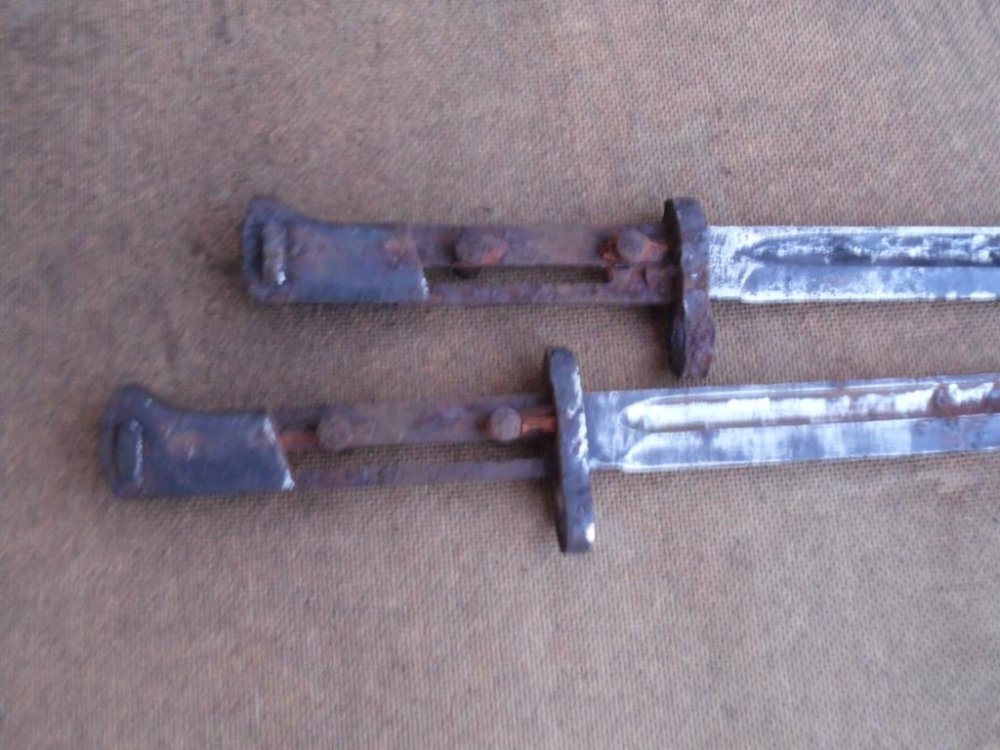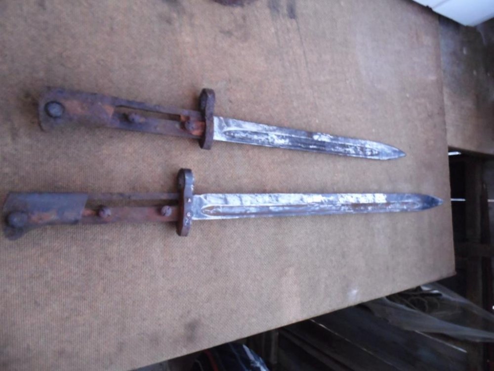 сегодне с камрадом поехали на разведку,нашли небольшой лагерьок,ну и насобирали немного ножиков,пуговок и т.д дольше походить не дал дождь.В общем на двоих 9 ножиков.Фото с телефона так что извините.
