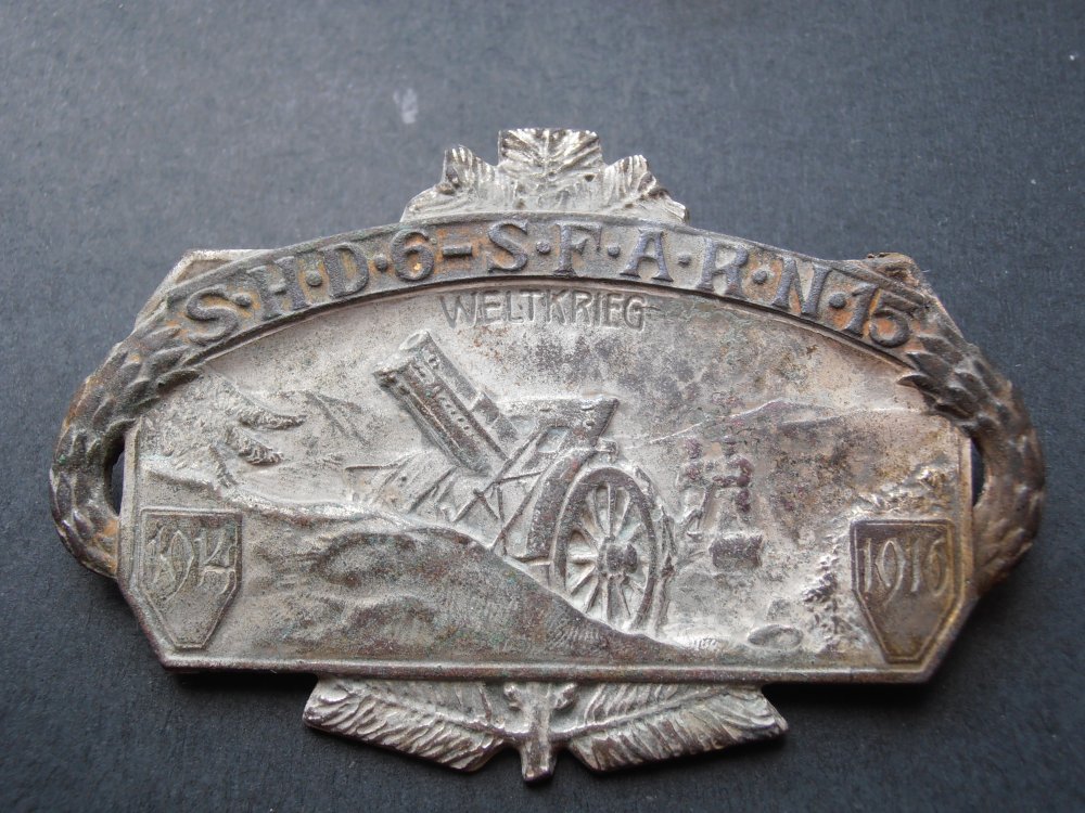 знак: S.H.D. 6 - S.F.A.R.N 15 (отдел тяжелых гаубиц № 6, полк тяжелой полевой артиллерии № 15)