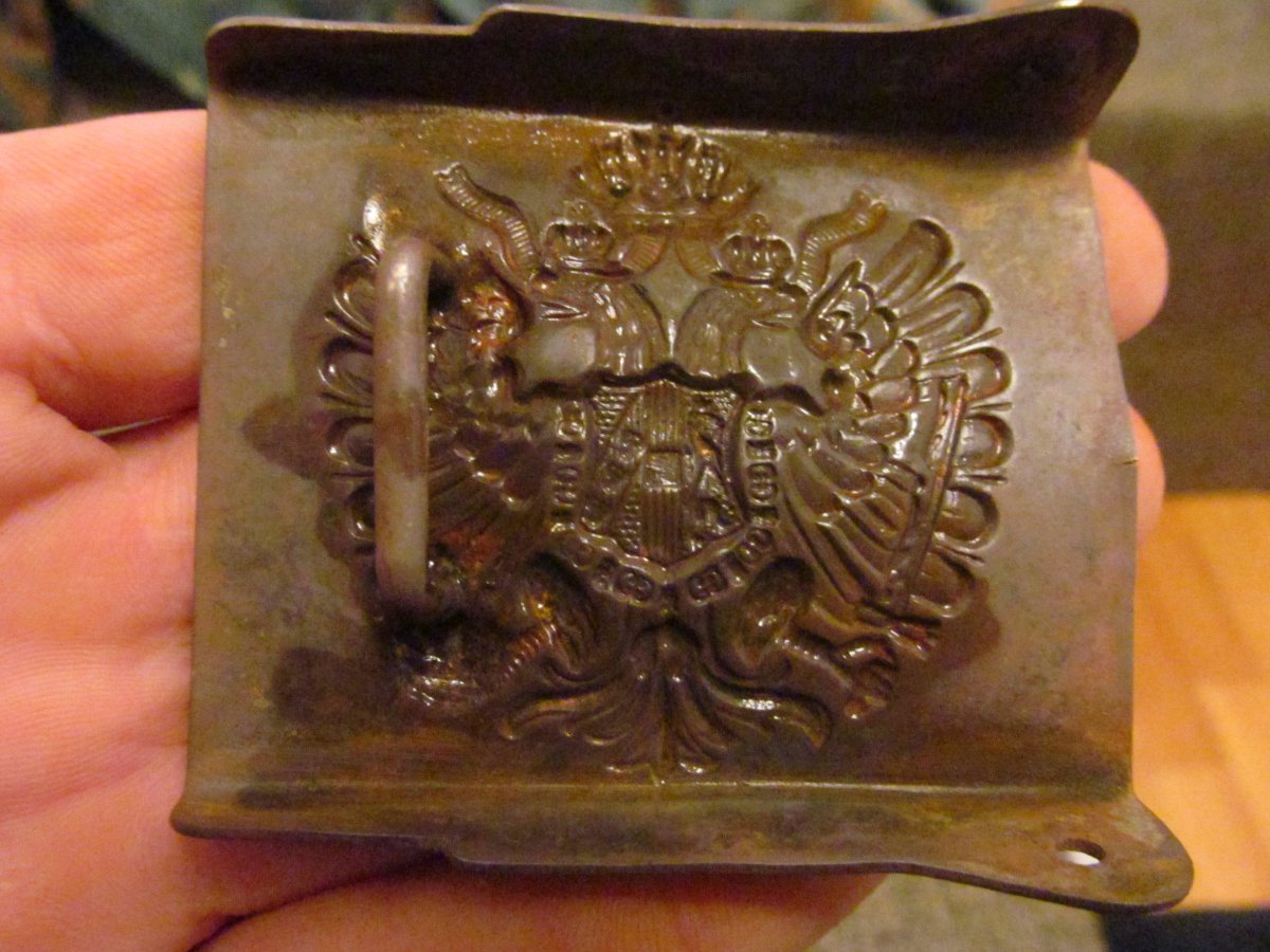 Сьогодні знайшов хрест Франца Йосифа, в цікавій фронтовій переробці кріплення. Міркую що був перероблений з носіння на колодці на кріплення безпосередньо на мундир, наче жетон. Тильна сторона зі шкіри.
