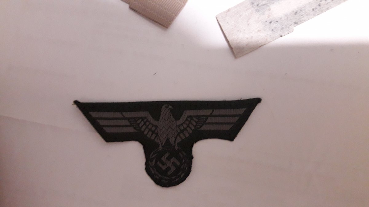 31) Трапеция Вермахт. Спорота, не носилась. Цена 100 грн. 32) Нарукавный щиток "Кубань". Минимальное б/у. Цена 240 грн. ПРОДАН 33) Перевязочный пакет во внутренний карман кителя. Производство Пауль. 2 штуки. Новые, не носились. Цена 60 грн/шт. ПРОДАНЫ 34) Нарукавный орёл СС. Цена 50 грн. 35) Петлицы СС бево. Новые. 2 пары. Цена 90 грн/пара.