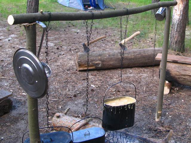 Это подвес для туристической посуды. Через кольцо продевается деревянная палка, которая ложится на рогатки. На крюк одевается котелок и размещается над костром.