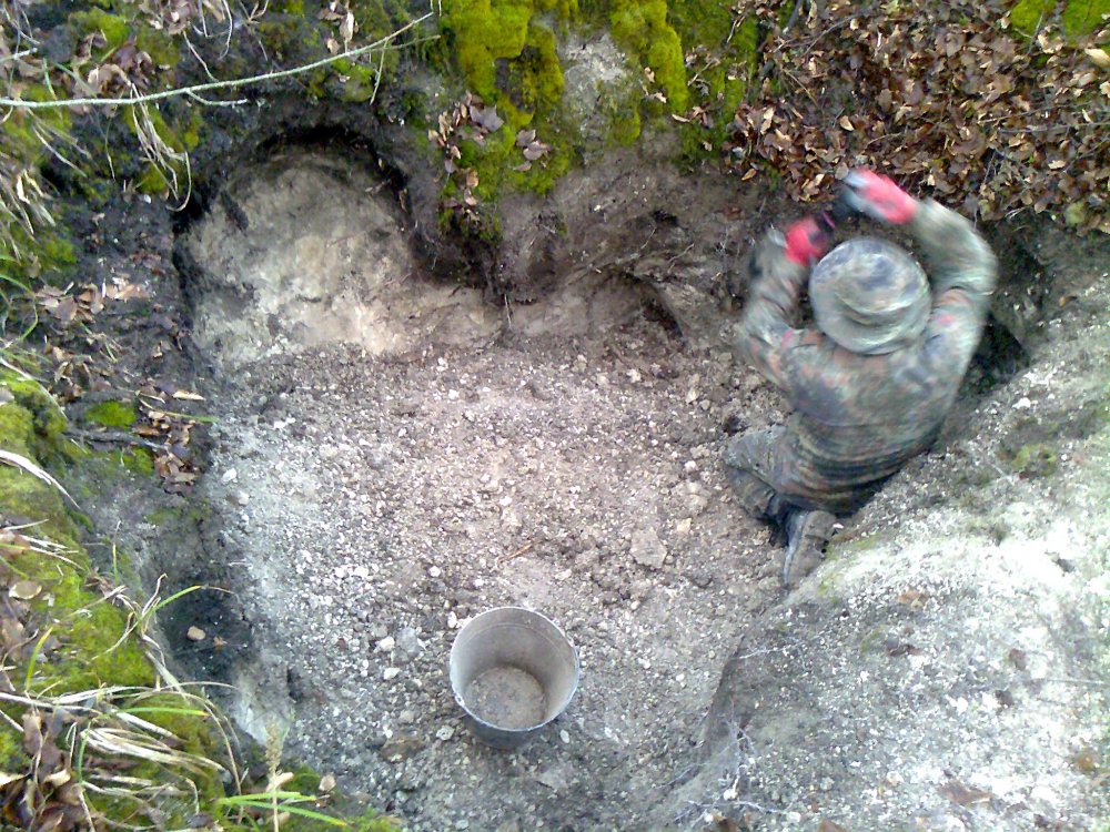 Як сказати, Вибрав блін який вже років зо 2 мене мучив. Він був без входу, прямокутний по периметру і просівший. Коротше не- стандарт. Фантазія малювала хабар.А насправді. Копали в двох 3м*1.5м висота 1.5 м. По часу десь 4 год