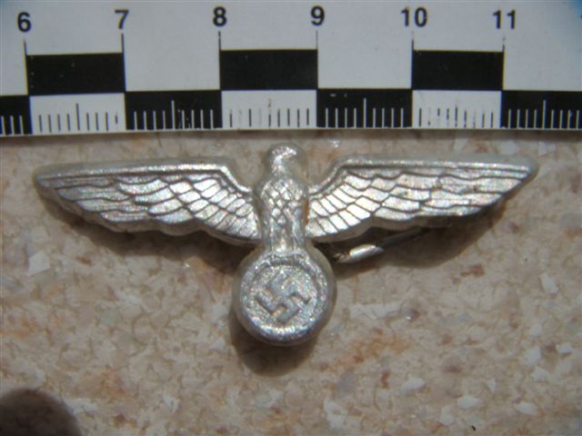предположу что кокарда СС,она имела меньшие размеры чем стандартная и крылья имперского орла несколько остроконечнее.