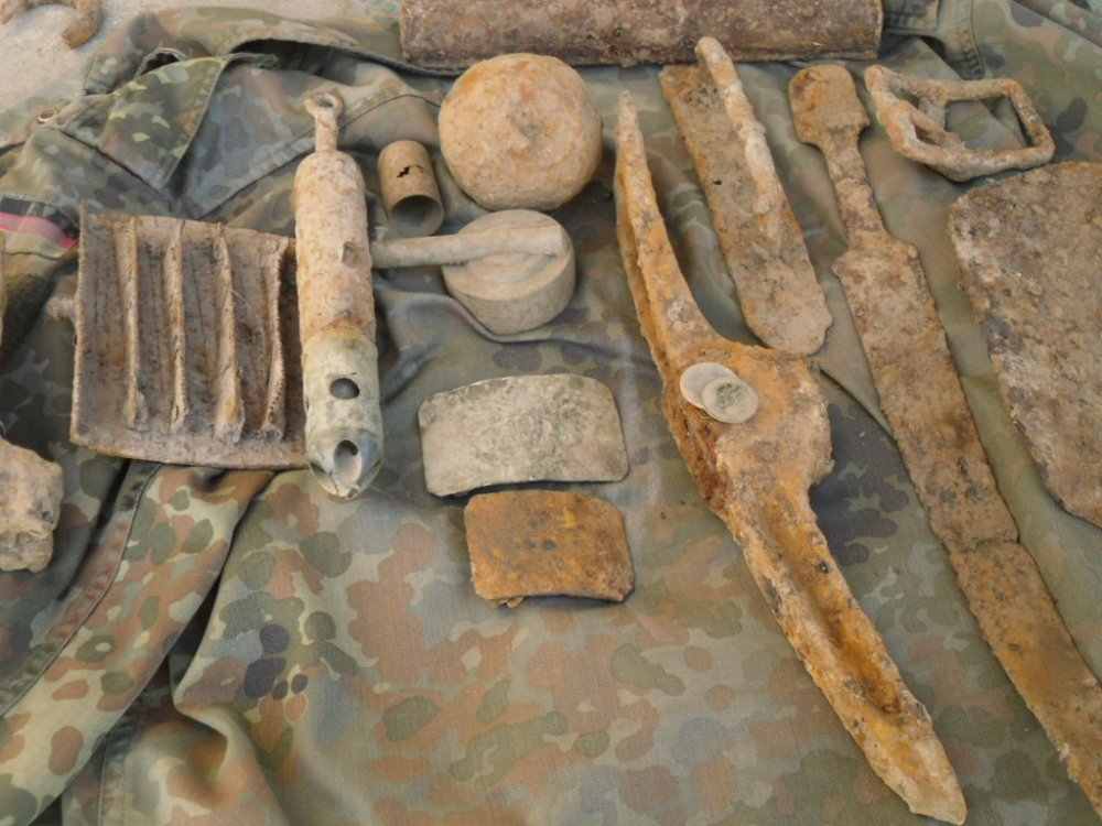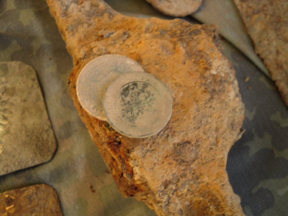 Сьогодні знайшовся вільний час і я надумав поїхати в ліс. День видався вдалим, нарешті попалися дві пряги РІА одна залізна, І мрія ще здетинства кінжал кама правда сохран поганий... Ще попався Австрійський знак з зображенням солдата біля пушки, який дивиться в бінокль, може хтось бачив такий в первозданному образі, ніяк не вдаеться прочитати надпис...
