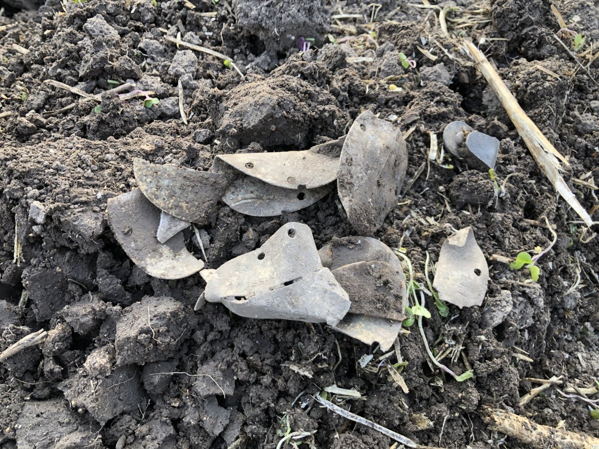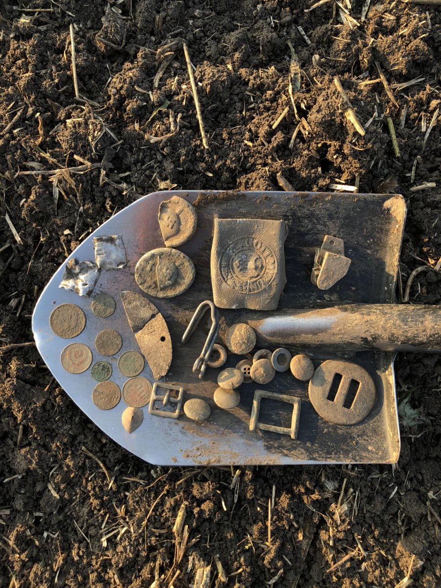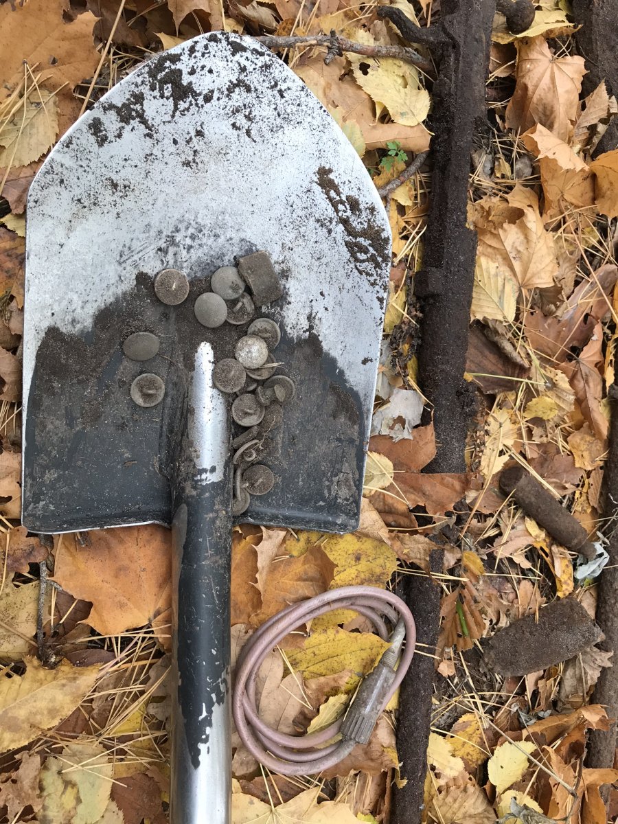 А наступний звіт вчорашній, як гарячі пиріжки з печі. Але нам гаряче не було( Дощ, холод, сильний вітер намагались нас вигнати з полів та ми рили! Вдалині бачили такого ж камрада відчайдуху, який точно щось знайшов, бо шмурдячив, як на розсипусі старенького Сигізмунда. Ходили ми з 8 до 18. Результат не жир, але був. Я знайшов половинку жетона Галичини артелериста ( з двох четвертинок), раняху 3 ст., гачечок на каску сс і ще трохи фурнітури і монет. Камрад - жетон штаб артилерії сс галичини, касон, голову і трубу фауста. Було ще трохи дріб‘язку, як завжди, з полів. По результату - знову ломана половинка, яких в мене вже сотні, але раняха перша за осінь. Будем розвідувати і рити;)