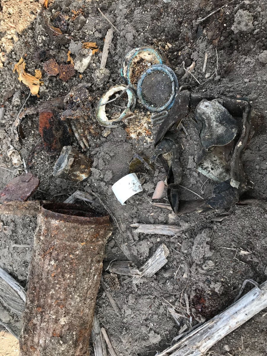 Поїхав раз по гриби і взяв апарат) знайшов позиції по Вермахту, події 41-го. Жодних траншей, блінів, стояли намети, бо знахідки плямами. Отже зачепив я декілька зриваків і почав крутитись. Результат на фото. Декілька палок моськи, мабуть німці вивчали) Одна вросла в дерево, її там і залишив, але згодом хтось вирубав).