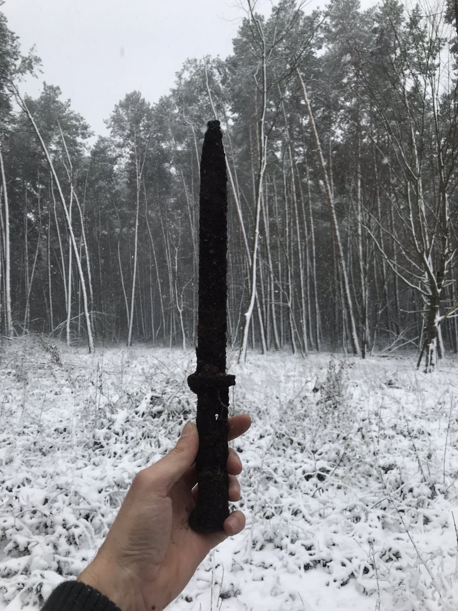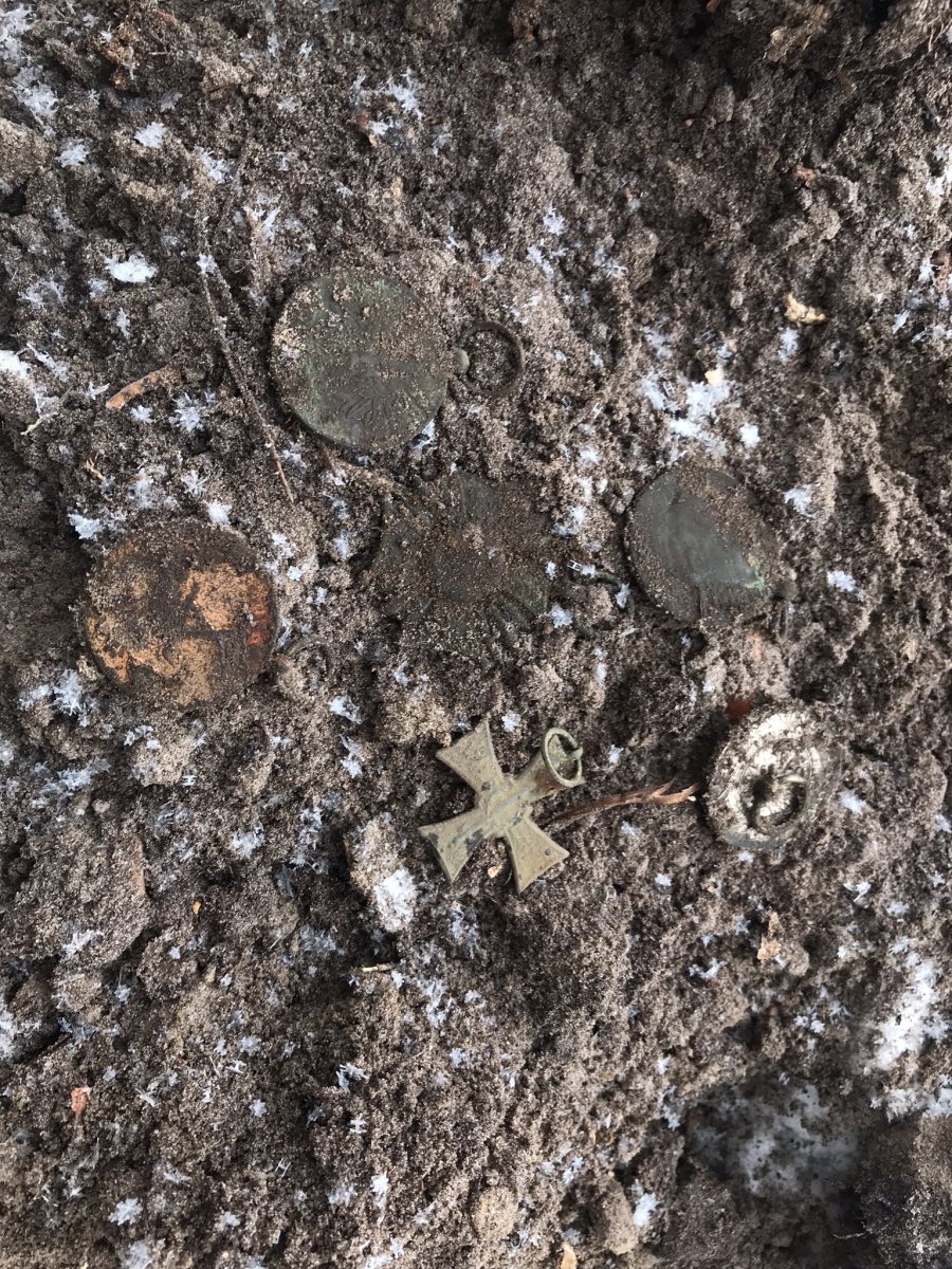 Далі прийшла зима, морози... вирішив пройтись засніженим узліссям. Там була траншея, в ній щось попадалось по Вермахту. Одним з перших сигналів виявився хрест. Спершу подумав, що це капен, але потім придивився і виявився хрест хоробрих. Я прогуглив зразу в лісі)))) Зробив фотосесію тому хрестові і сильно здивувався, коли з ямки почув ще сигнали. Все інше на фото. Того ж дня почав знімати ще й відео) тому на відео теж є цікаві моменти.