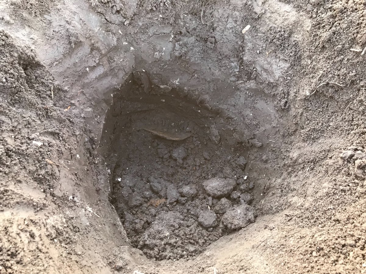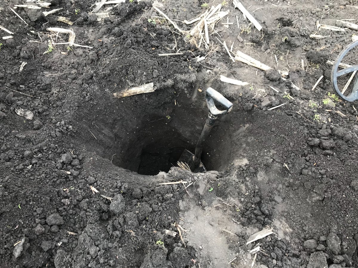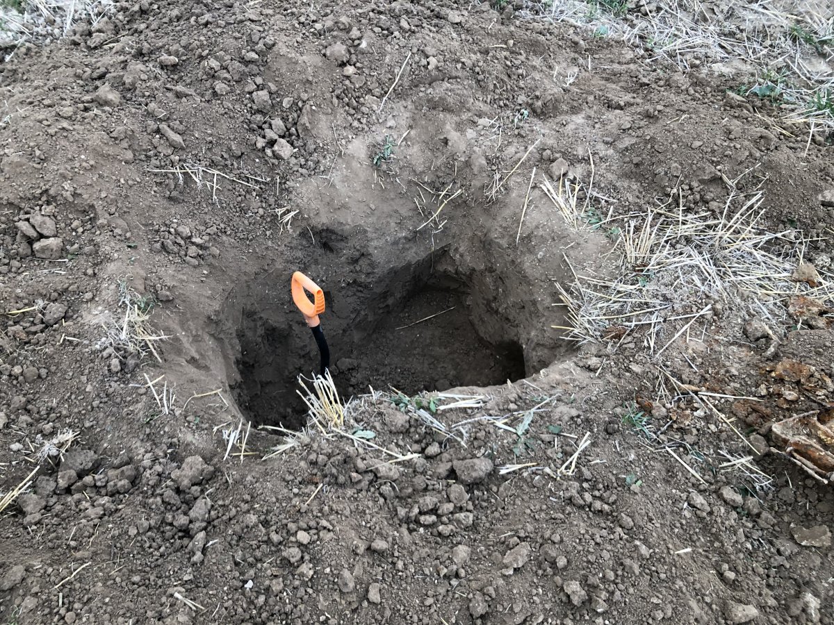 Власника, звісно, не було. Глибина на пів штика, все в одній ямці