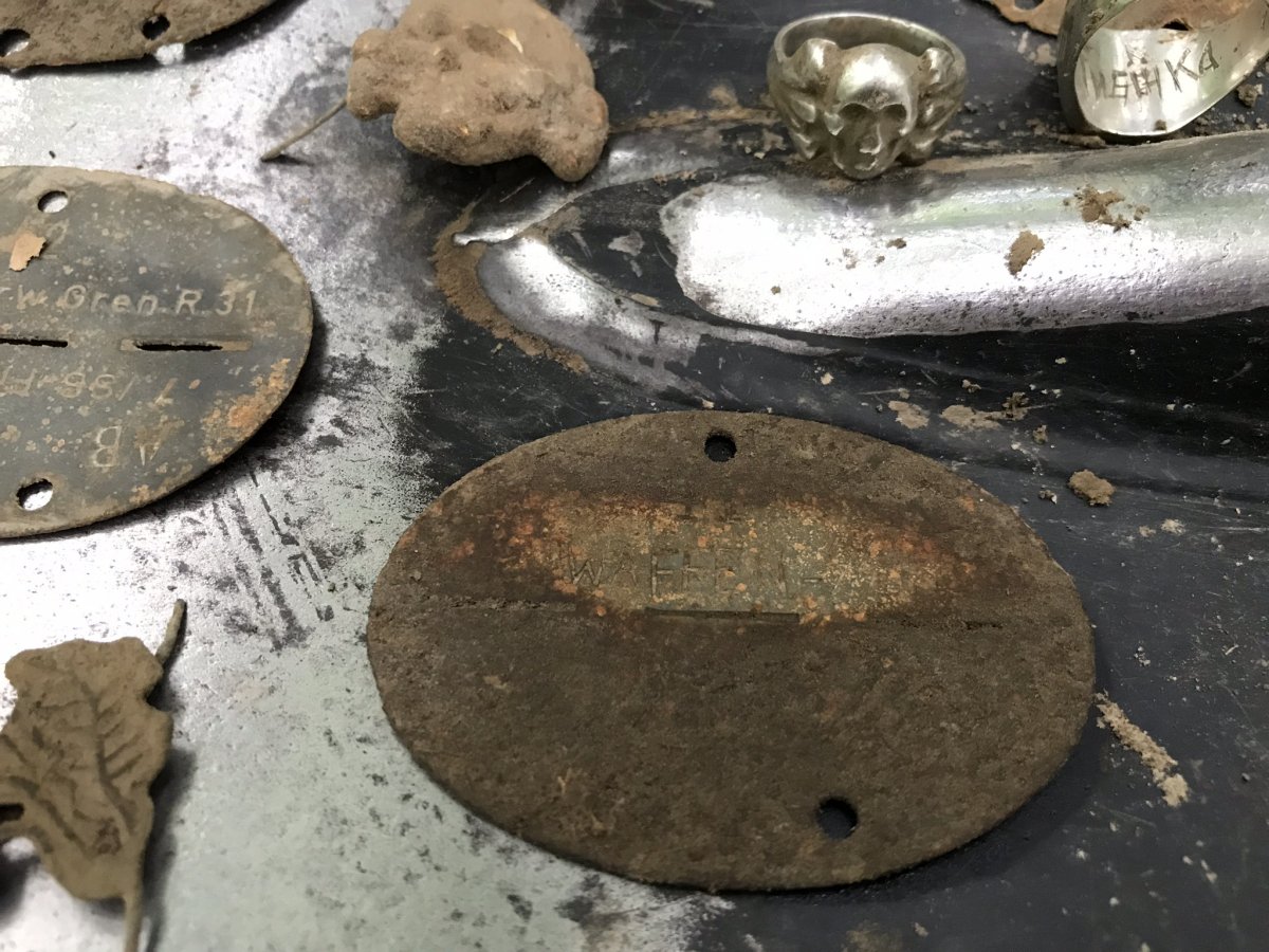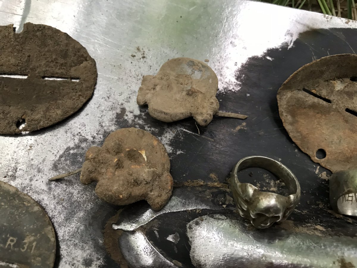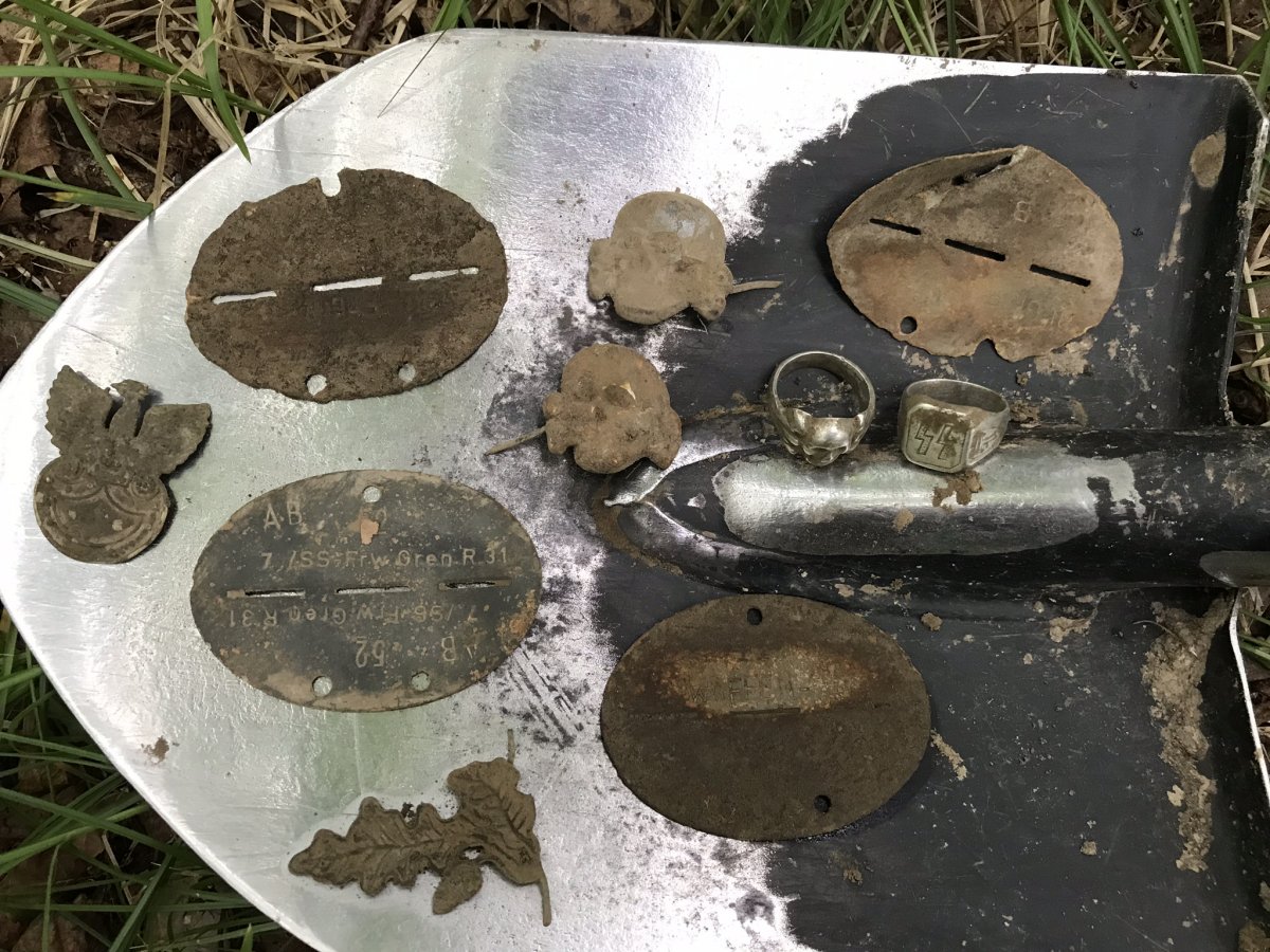 Як я вже казав, літні знахідки одного дня стали знаковими. Я знайшов чотири жетони (ваффен сс, гренадера, два поліцаї), кокарду польського легіонера і якусь дубову гілочку. Камрад - два черепки і два перстні.