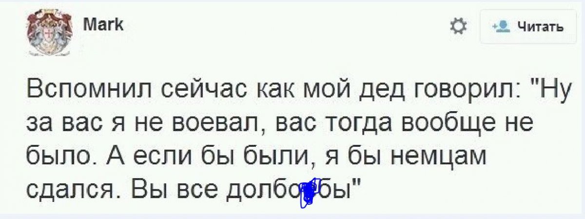 "С праздниками всех,с разными,кому картошку хоронить,кому погибших поминать, перед этим про трудящихся всех стран насвинячиться." Добрі господарі картоплю вже давно посадили (похоронили) ... Мертвих ще на Великдень та Провідну Неділю поминули ... А п"яну тризну на могилах жертв ДСВ справляти - це хіба для дебільних москалів святом та забавою виглядає ... мертві спокій люблять а не насвинячених нащадків москальських колабораціоністів ... ...