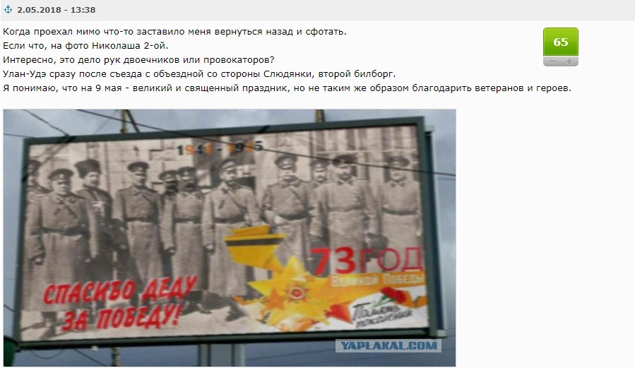 Самое смешное не то, что они немцев или американцев на плакаты вставляют или Тигры и Мессеры, а то, что начали ряженных дедов малевать. Через 50 лет Лещенко и Кобзон в медалях сойдут за ветеранов ВМВ.