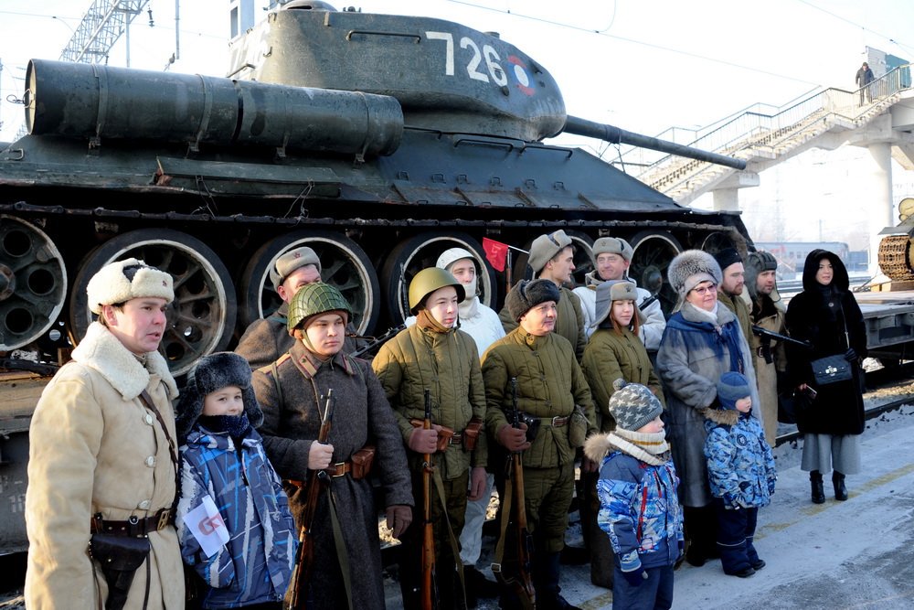Мордор жгёт : Три десятка танков Т-34 прибыли из Лаоса на вокзал в Чите. Железнодорожный состав торжественно встретили, несмотря на 20-градусный мороз. Среди встречающих было множество жителей города, в том числе ветераны войны и юнармейцы. Особо эффектно смотрелись на фоне танков члены клуба исторической реконструкции, одетые в форму военных лет. Передача их России состоялась в рамках военно-технического сотрудничества. До недавнего времени переданные боевые машины состояли на вооружении лаосской армии, поэтому все они находятся в полностью исправном техническом состоянии. https://tvzvezda.ru/news/forces/content/201901130752-b0zk.htm