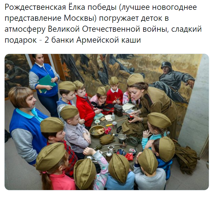 Елка Победы. Участниками новогодней программы Музея Победы стали уже около 4 тысяч человек. Квест «Елка Победы. Новая миссия» стартовал 10 декабря. «Ребята совершают увлекательное путешествие в прошлое, в победный 1945 год. Вместе с юным партизаном Ваней Гришановым они помогают фронтовому Деду Морозу устроить новогодний праздник»