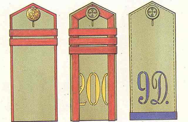 Продолжение истории с гимнастическими рубахами. 29 июля 1907 г. Утвержден новой образец гимнастической рубахи для нижних чинов Цвет определялся как защитный (зеленовато серый_) Гимнастическая рубаха обр 1907 г имела два боковых внутренних кармана ниже пояса . По разрезу воротника полагалась обшивка цветной тесмы. Погоны цветные как и на других формах. 1909 год (приказ №100) Летние гимнастические рубахи в Армейских частях положены без обшивки цветной тесьмой. В Гвардейских частях обшивка полагалась цветной тесьмой по нижнему краю воротника и рукавов . Погоны положены двухсторонние . Одна сторона защитного цвета, другая цветная. Ниже илл. погон на гимнастическую рубаху нижних чинов.