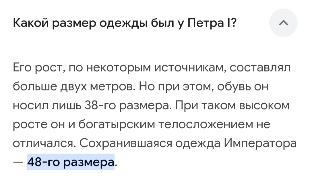В Эрмитаже у него размер как у нее визуально. Картины есть при жизненные где размер ступни и ТД в сапогах видно? Как и плечи по отношению к иным людям пусть и ниже ростом.
