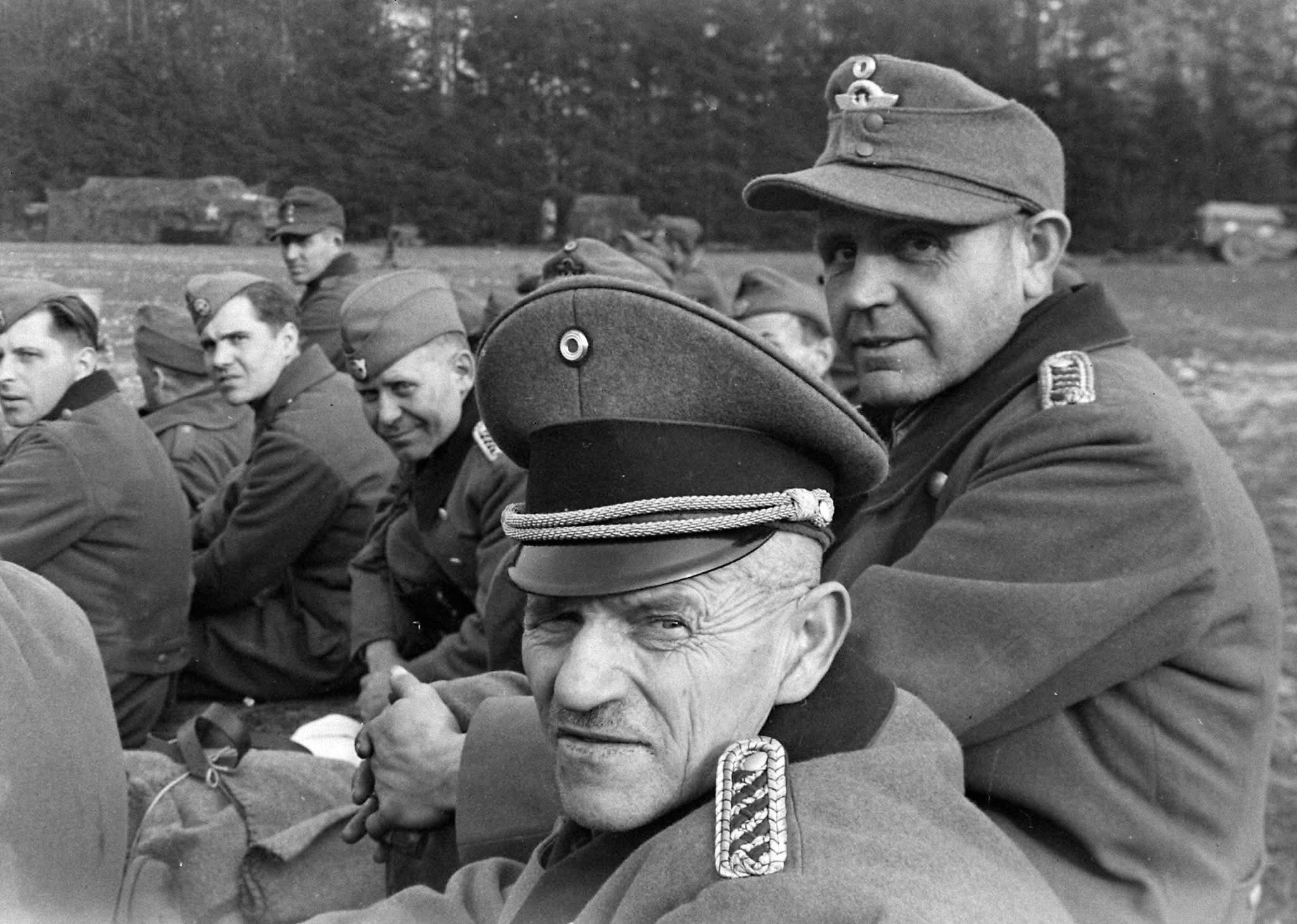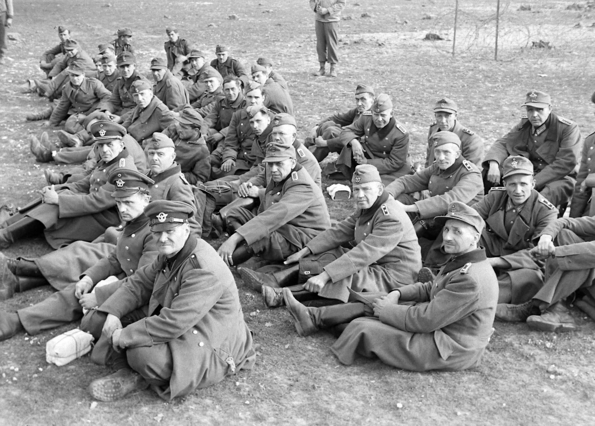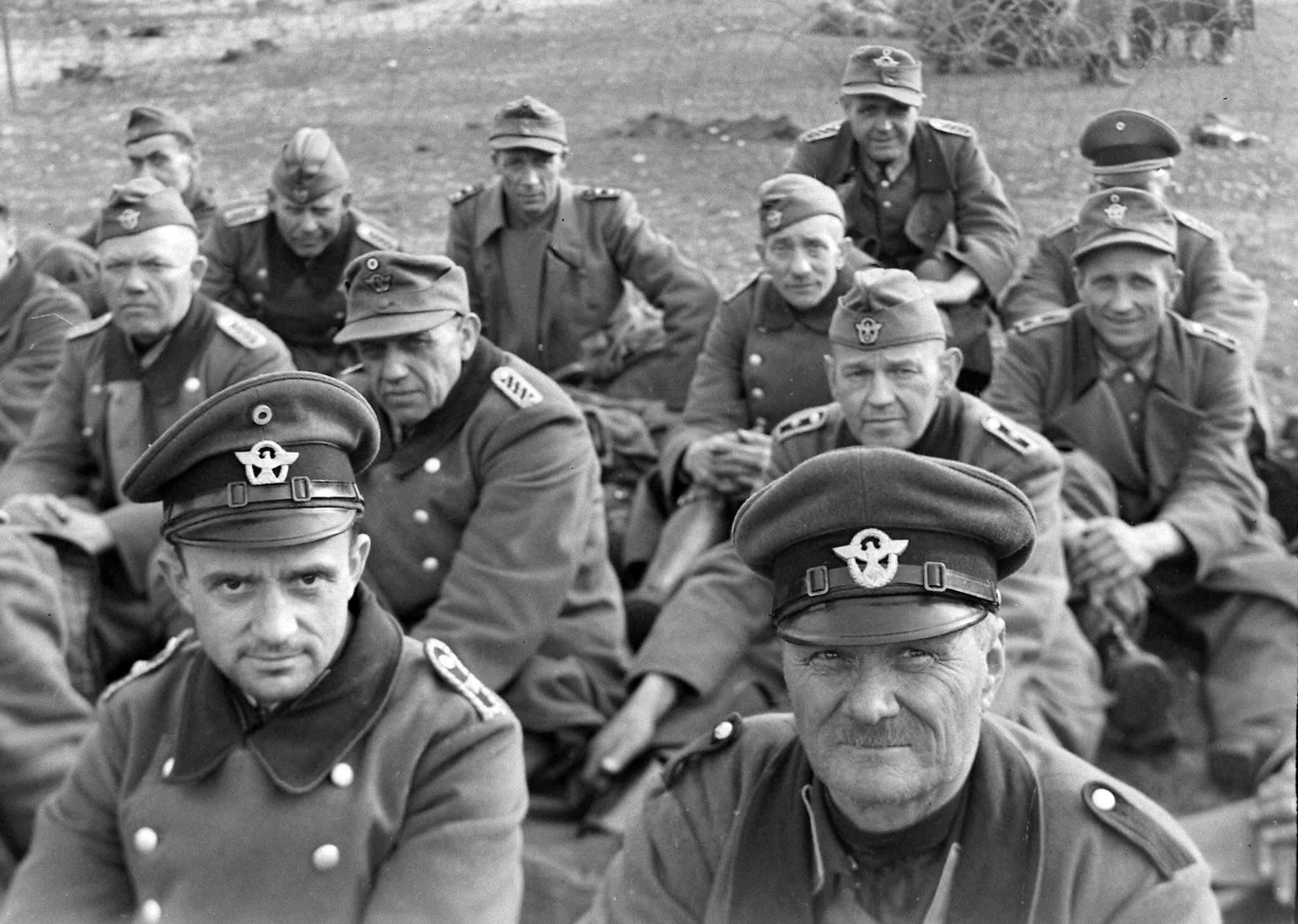 Что интересно это часть ветеранов полиции, зачисленные в фольксштурм, приданные гарнизону...есть и кадры кинохроники, где часть их берут в плен непосредственно в городе, на окраинах итд.... Аннотация Deutsche Kriegsgefangene in einem Sammellager außerhalb von Frankfurt am Main, April 1945 Немецкие военнопленные в сборном лагере под Франкфуртом-на-Майне, апрель 1945 г.