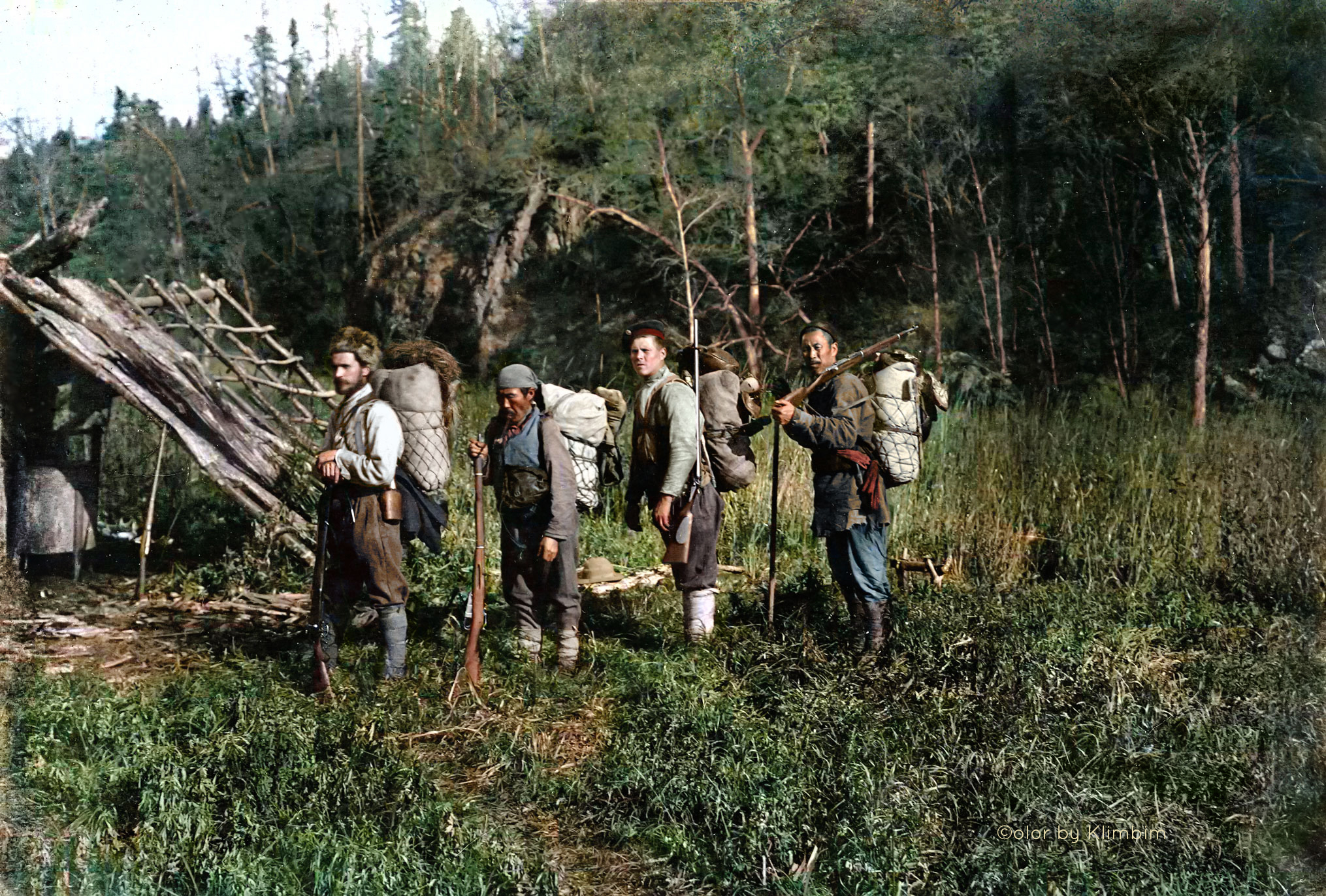 Кто помнит с детства фильм Дерсу Узала. Вот фото настоящего Арсентьева и Дерсу(1й и 2й). У Арсентьева не мосинка. Маузер?