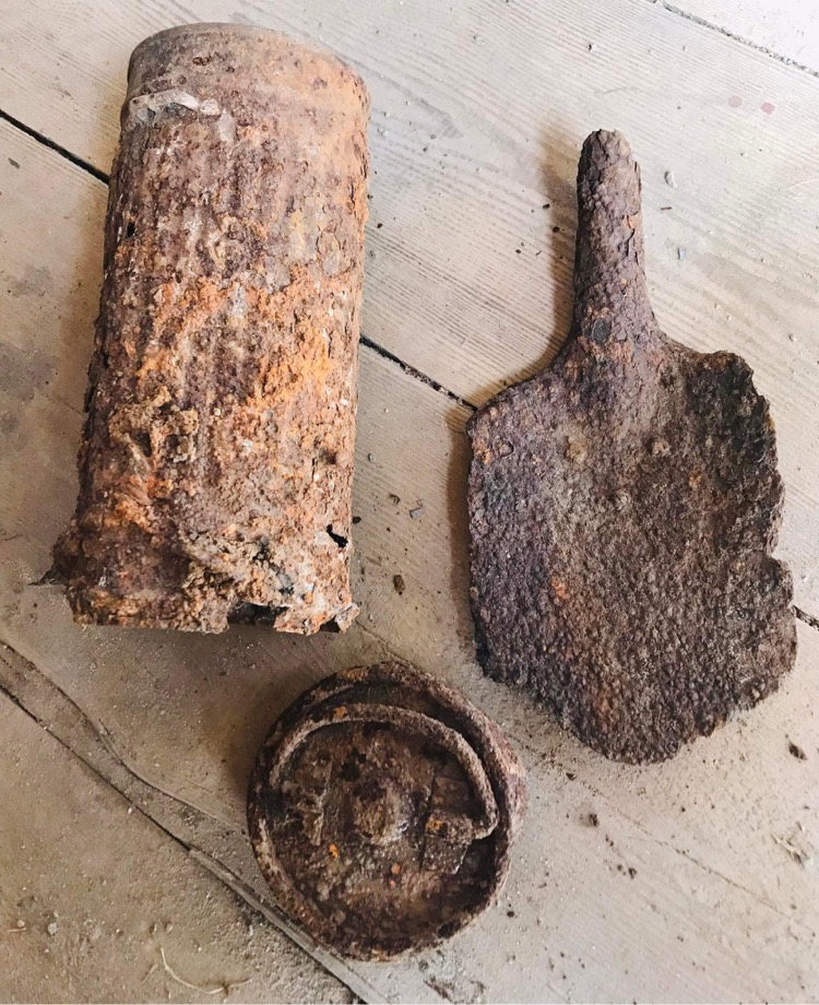 4. Використана гільза від зенітної гармати С-60 (57 мм). Номер на ній UOR - 281 U і так далі ( на фото...