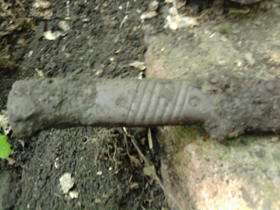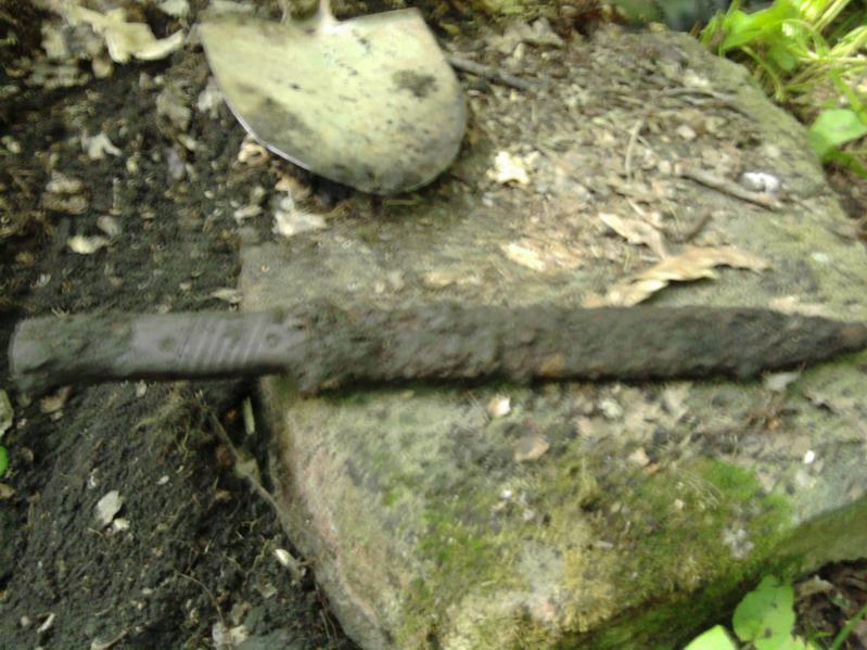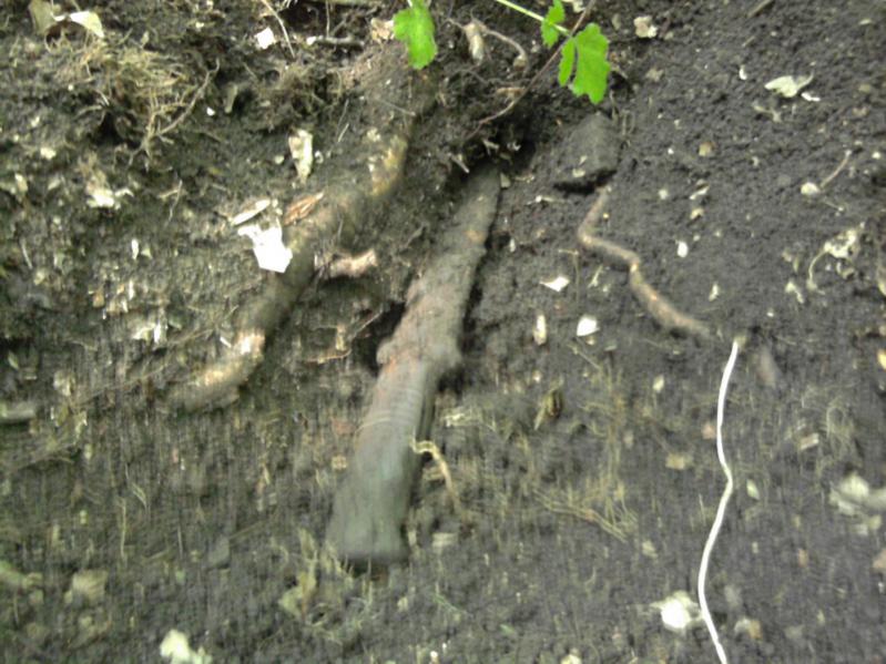 В воскресенье 13.06.10, опосля днюхи, с похмелья и поспав всего 3 часа, отправился с камрадами на коп. Всю дорогу думал о том, что ума нет вовсе (кто умным назовет?! вместо лопату в зубы...). Дойдя до места и расчехлив прибор еще раз подумал на кой оно мне надо, грустнго побрел за компанией как телок на привязи . И тут слабый сигнал, сел на камень и начал ковырять лопаткой... штык лежал под углом градусов 40 на глубине 20 - 30 сантиметров, оплетенный корнями. От похмелья не осталось и следа, копал одними руками как крот, а в голове одна мысль - хоть бы в ножнах.... Сейчас киснет в керосине, что меня удивило, так это сохран деревянных накладок