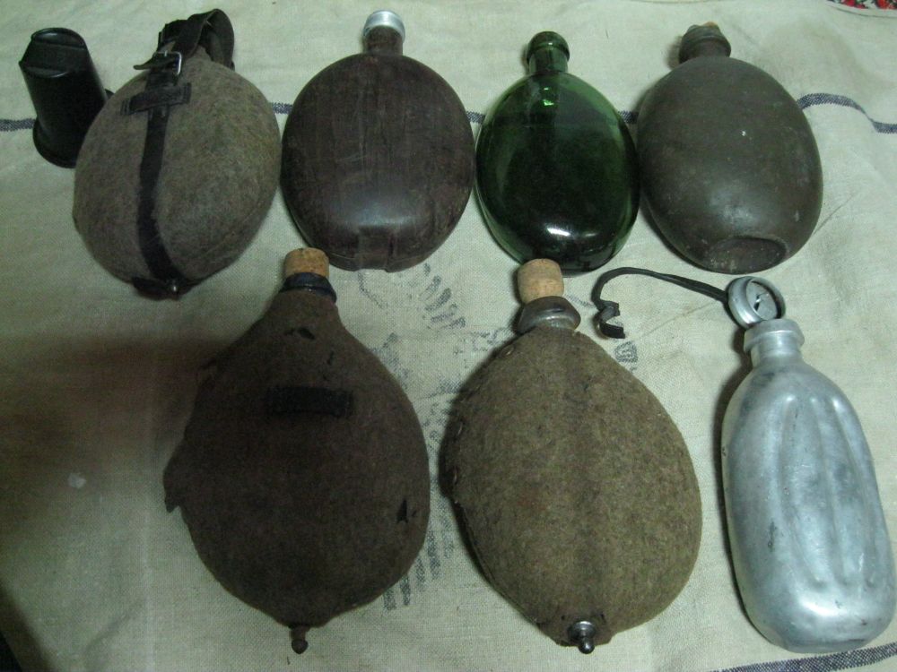 первая вермахт при условии что все родное и колба в норме дол.60-80.вторая кокос без крышки грн.190-240.третья стекло РИА ПМВ.если без трещин и сколов 130-180грн.четвертая немец ПМВ, думаю грн.250-300. следующиие две по ПМВ.непонятно нужно фото без чехлов.седьмая венгр 120-160грн.