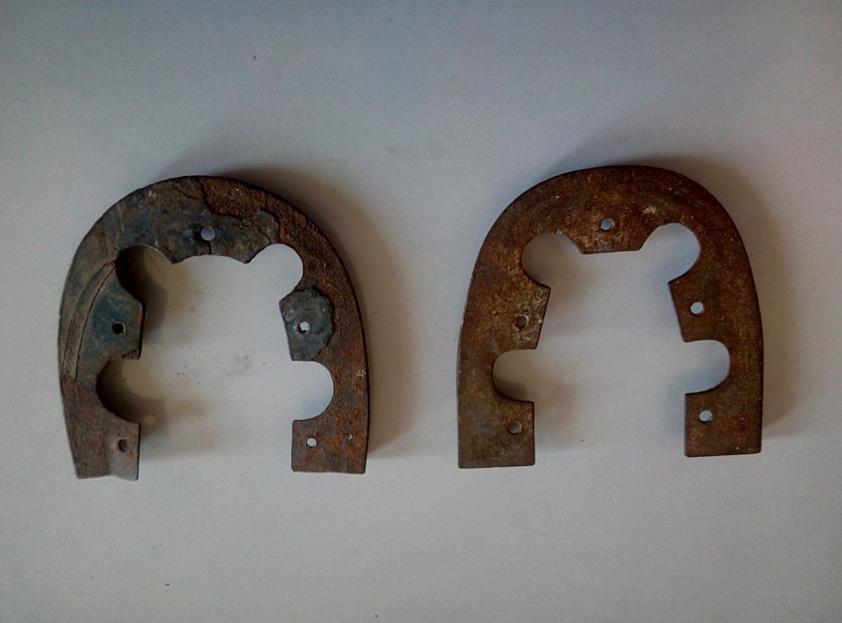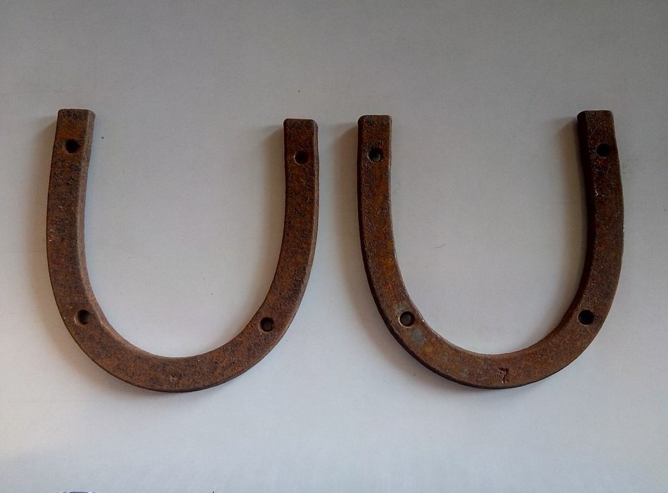 Приветствую зашедших, просьба помочь в опредлении. Одни подковы я знаю точно, что немецкие периода войны, а вот вторые, которые без форменных выштамповок чьи и к какому периоду относятся? И также вопрос по подковкам на носок, три комплекта, 2, 4, 6 размеры. У неизвестных подков клеймо "7", у известных "17". Заранее спасибо за помощь.
