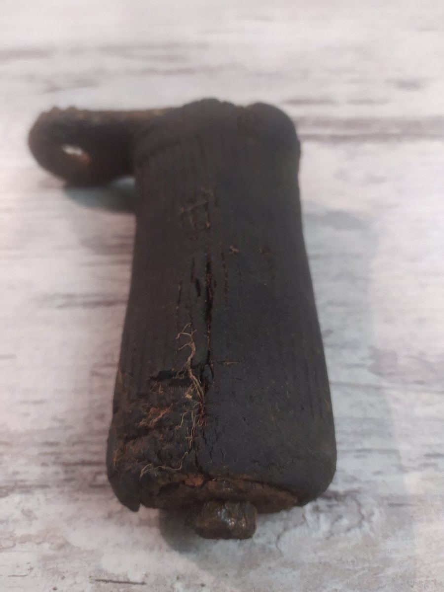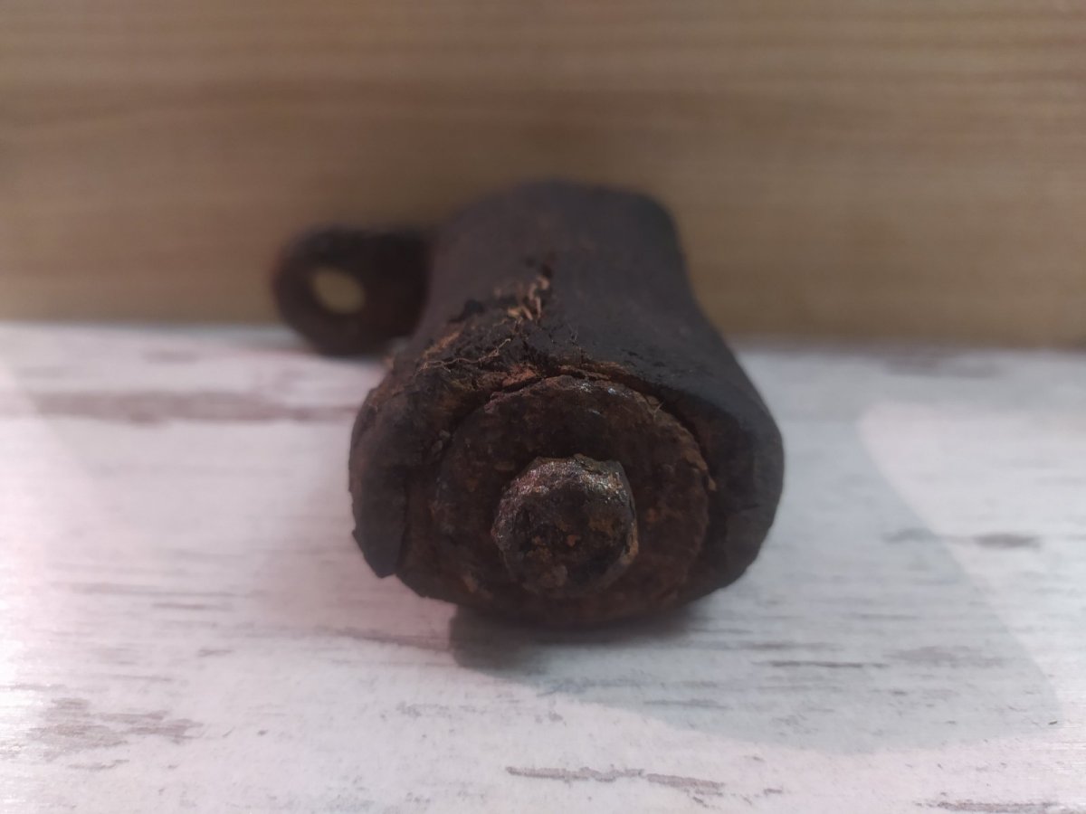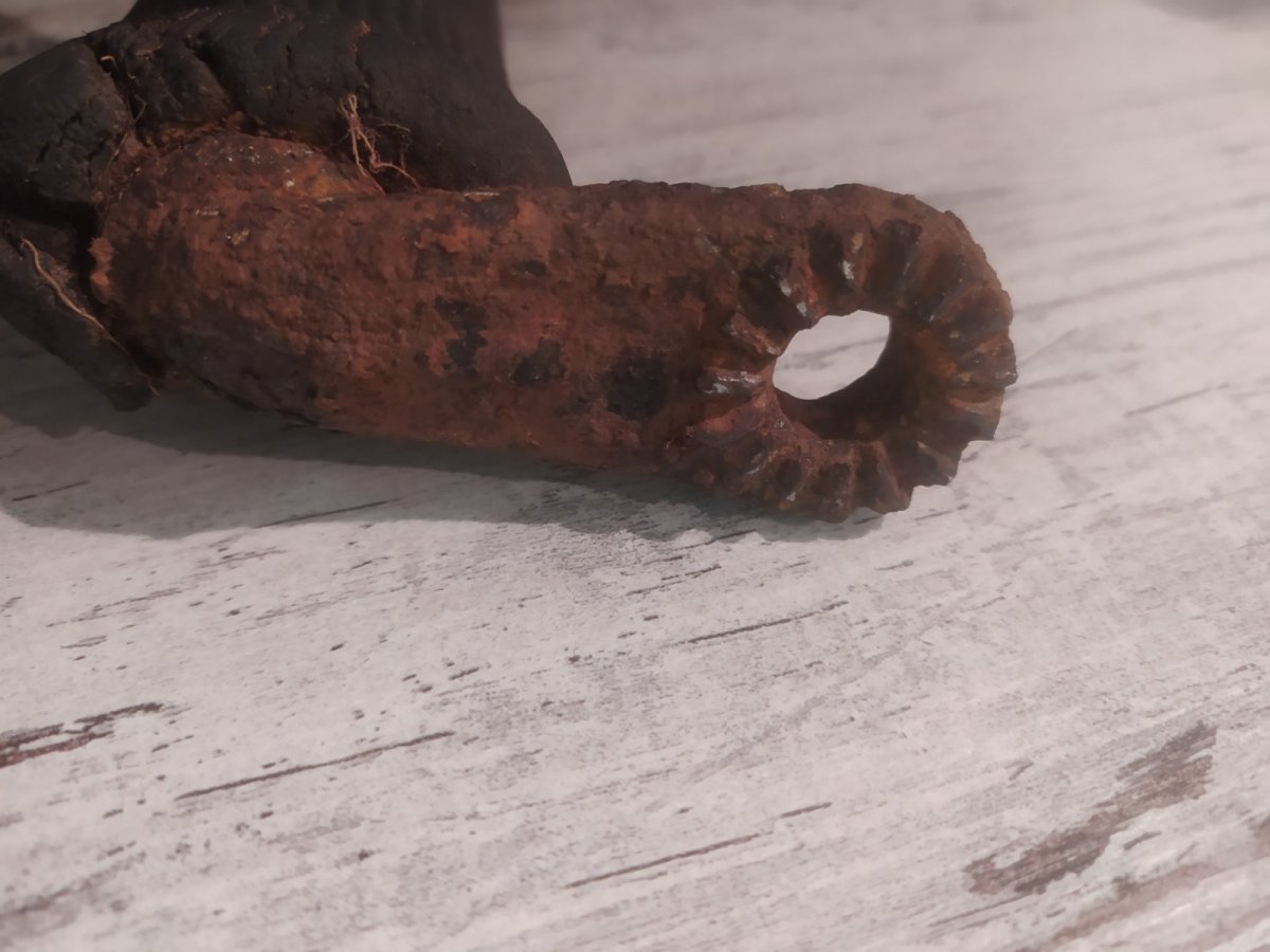 Здравствуйте, я бы вам посоветовал "убрать" резину - она своё отжила - и внимательно осмотреть это место. Я так когда то сделал и обнаружил клеймо принадлежащее Ганс мото цундап... Да, и продал эту ножку довольно дорого!