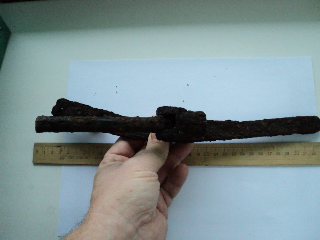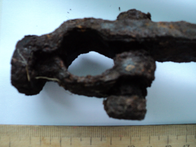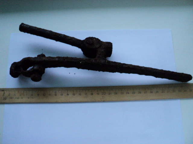 Вырыл в немецком капонире. Остатки черной краски. Чем-то напоминает подножку на мотоцикле, только без резины. Или это что-то другое?