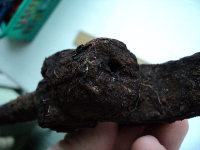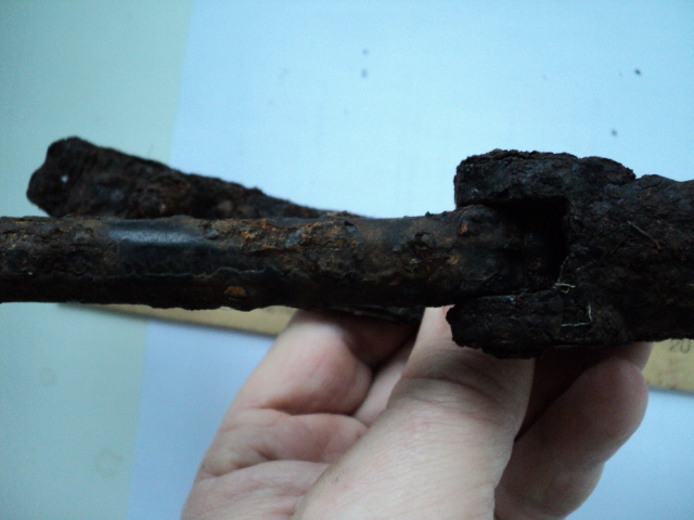 Немного обстучал от ржавчины. Это угол максимального отклонения. Внутри, по-видимому, есть пружина. Отверстие для смазки.
