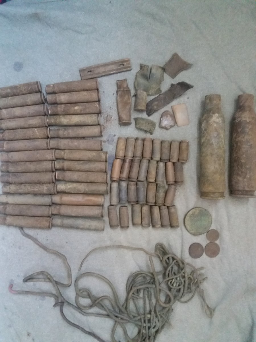 Здоров Толян!Че ты всякие проволочки да гильзы фотаеш,а мне коришь что находок мало?Я это на пнях оставляю.У нас дожди....Но на пару часов в субботу выскочил в лес,потом еле выехал...