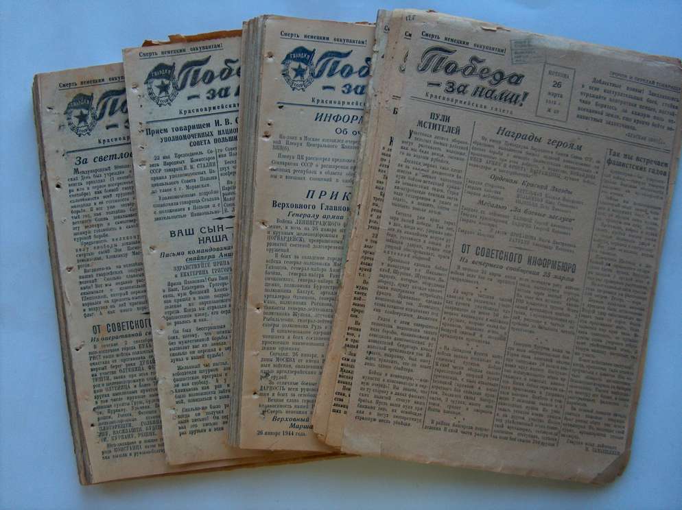 Цена - 1930 гр. Сохран по фото. Часть подшивки дивизионной красноармейской газеты "Победа - за нами" (1943 - 1944). 170 номеров. Дивизия прошла путь от Сталинграда до Секешфехервара. Оплата на карту ПриватБанка. Доставка на покупателе (Автолюкс, Новая Почта).