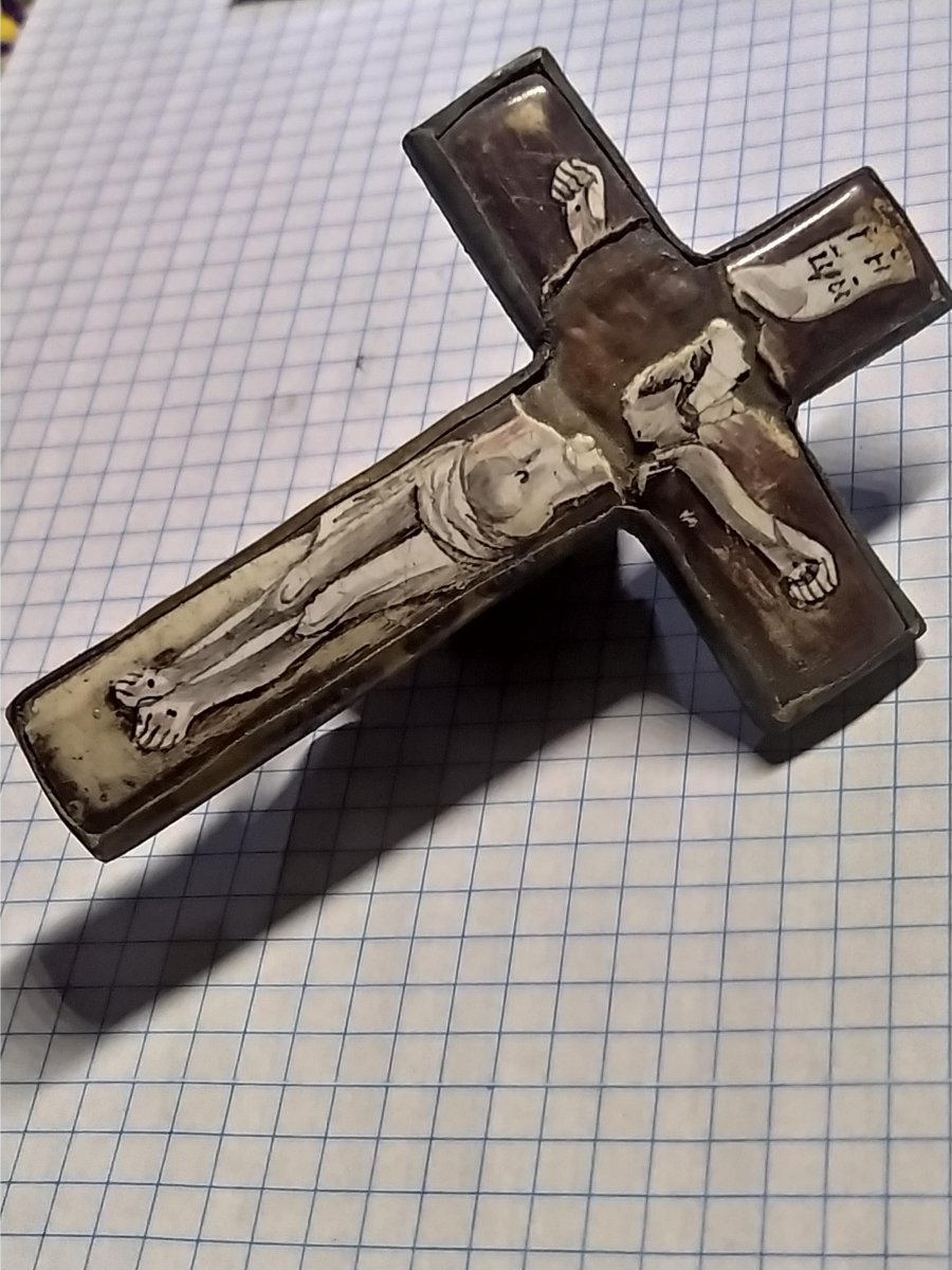 Добрый вечер, подскажите пожалуйста что за крест? Какого периода? Материал бронза и возможно кость. Заранее спасибо.
