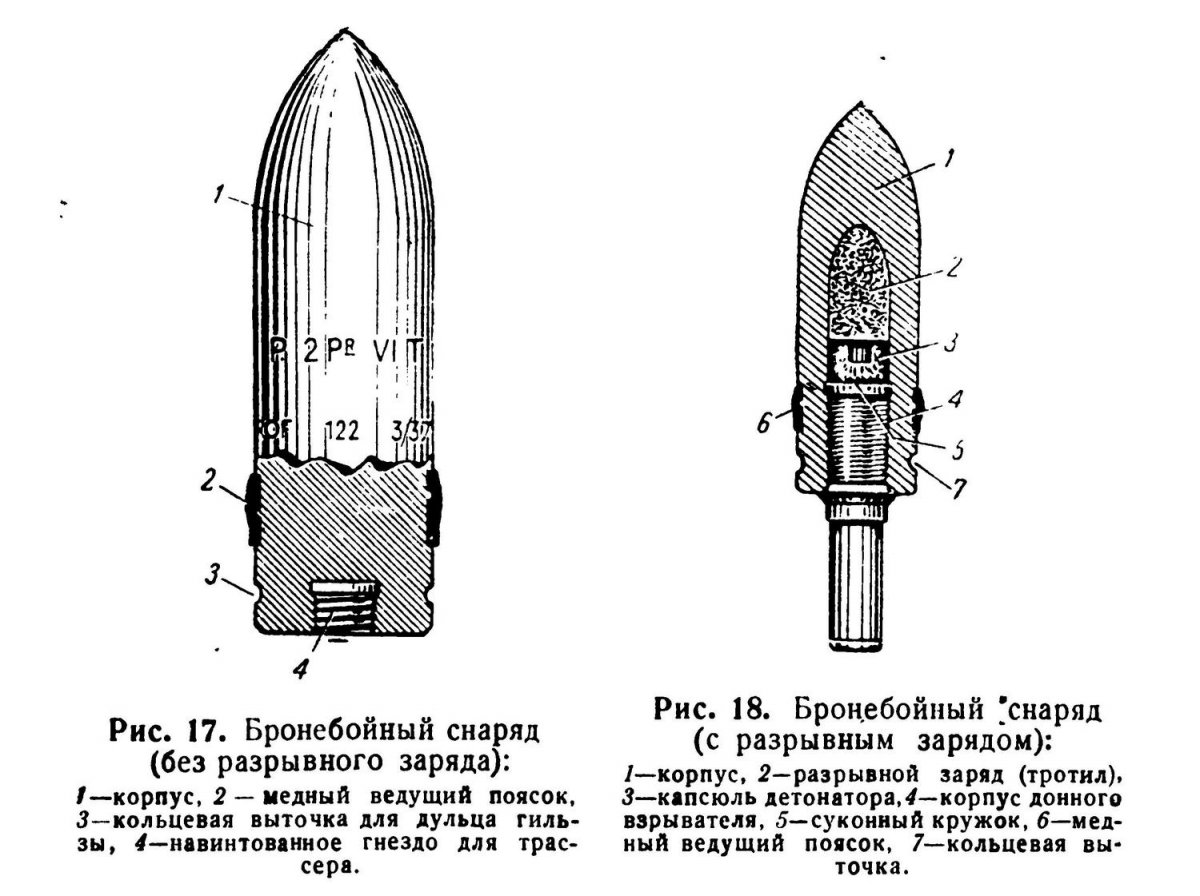 Виталий, здравствуйте. Ерунда какая-то...Ни какого ВВ внутри у ДАННОГО снаряда быть не может (да и не было). Нет резьбы для установки в корпус снаряда взрывателя с трассером. Сравните фото №1 и №3 ниже (и фото №2 ТС). Так что находка просто бронебойно-трассирующий снаряд, с запрессованным трассерным составом в его корпус. Какой снаряд каким является ясно по приведенным ниже схемам.