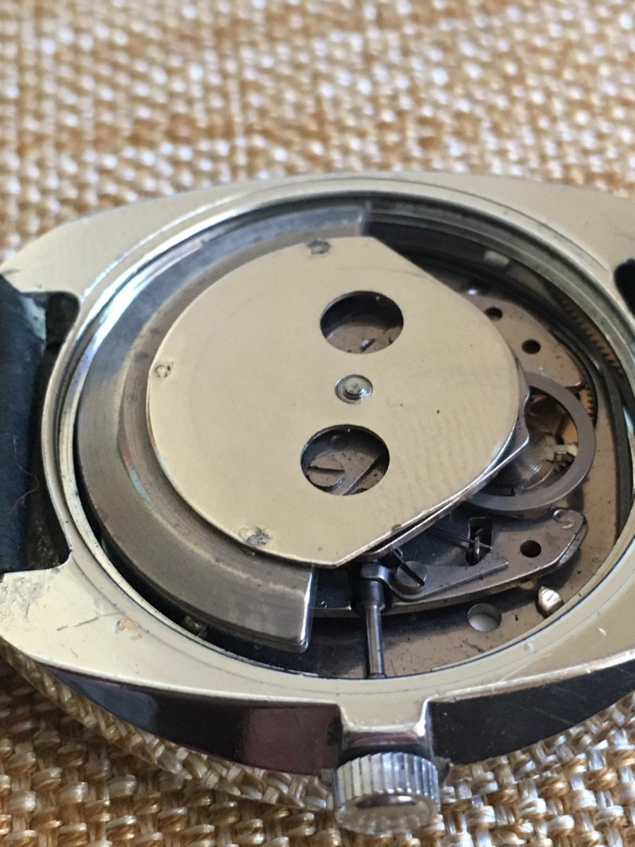 Часы TIMEX 48852 M33 с двойной датой и сложным эксцентриковым автоподзаводом с одноступенчатым редуктором. Корпус латунь/хром, крышка нерж, 5 АТМ. Ор. 1974-79 г.г. Около чуть выше 30 долларов у них, у нас на любителя.