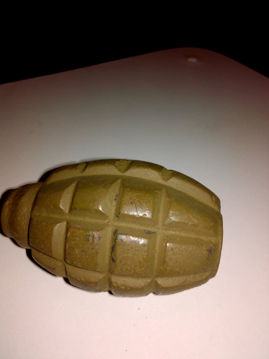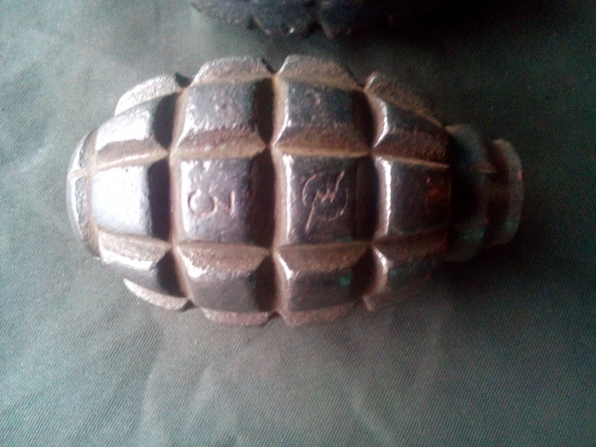Доброго времени. Интересна Ф-1 с бОльшим винтом. Возможно , что корпус сделан не в СССР. Схожий , по клейму, макет имеется, с четкой ,,1,, , с двух сторон и макетом запала Ковешникова, выпуска 1931 года. Вторая , самая обычная , ,,ранняя,, Ф-1 , отечественного производства, предвоенного периода. Винтами закрывались технологические отверстия. - З повагою-