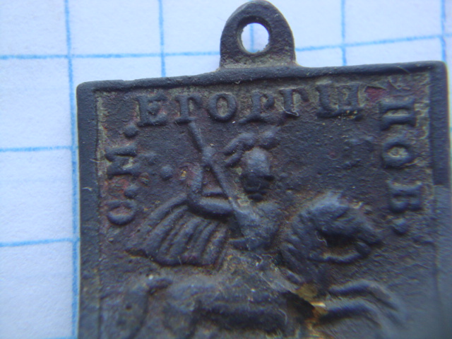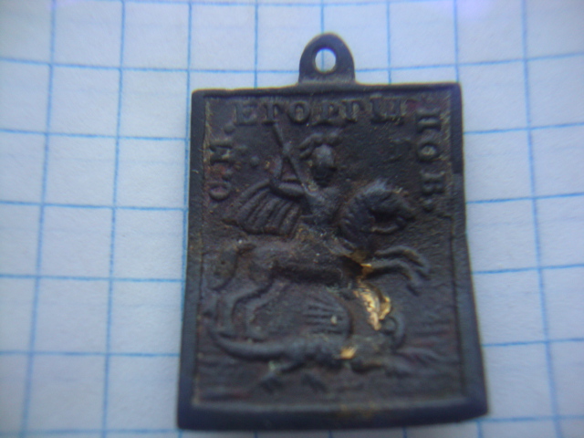 вітаю. це " чудо Георгія о зміє", кінець 19 - початок 20 століття. реверс замилений, але скоріш за все це образи святих Миколи Чудотворця та Іоанна Богослова, БМ, чудотворного хреста.