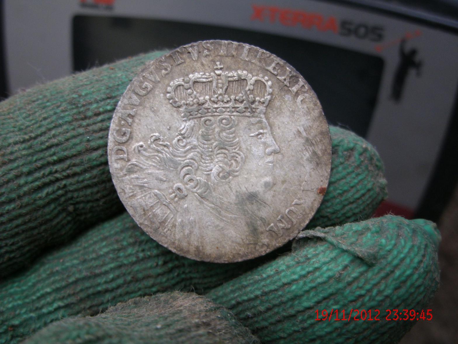 Жабоморда зовут Август III, погоняло у него Толстый. Перед нами его орт коронный в состоянии не ахти. Последняя цифра года - "4". Так как он правил с 1734 по 1763, то годы чеканки могут быть 1734, 1744, 1754. Под гербом на реверсе стоит знак "С" (часть знака "Е С") - он принадлежит минцмейстеру лейпцигского монетного двора Эрнсту Дитриху Кроллу. Так как в 1734 году орты чеканили только в Дрездене, а в 1744 году их не чеканили вообще, то перед нами частый орт 1754 года.