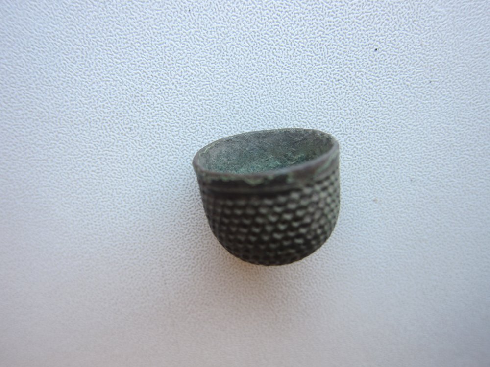 Попался на копе наперсток необычной формы,почему необычной,мне кажеться он короче по длине нежли час-то попадаемые,по весу он тяжолый,вчера нашол его на поле. Может кто сможет подсказать каких времен сей аксессуар. Заранее благодарен.