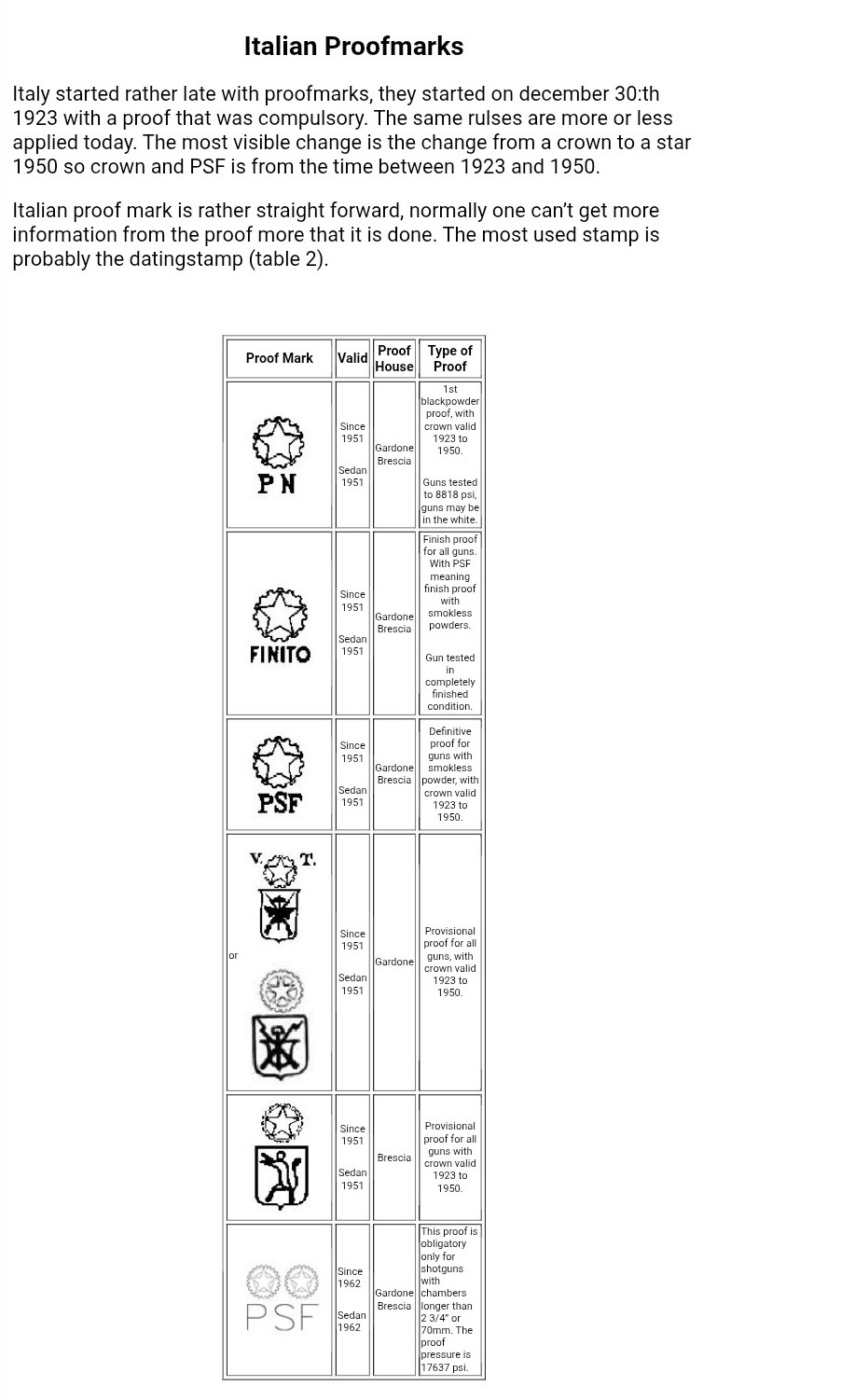 Доброго ! Щодо клейм - клеймо Finito PSF - випробувальне клеймо кінцевої перевірки у Gardone Val Trompia (біля м. Брешуа в Італії, PSF під короною - абревіатура Polvere Sensa Fumo - проба бездимним порохом). Виготовлена в період між 1923 і 1950 рр. З повагою,