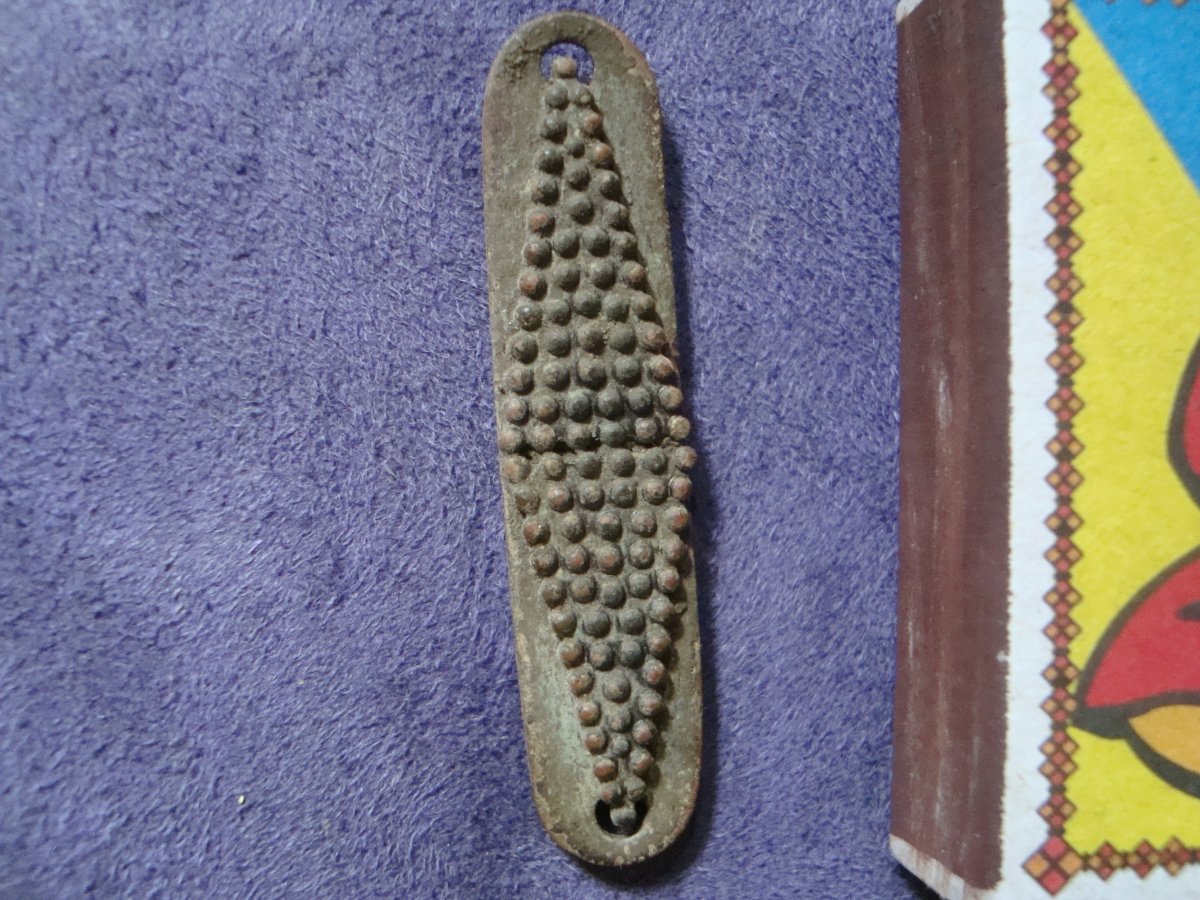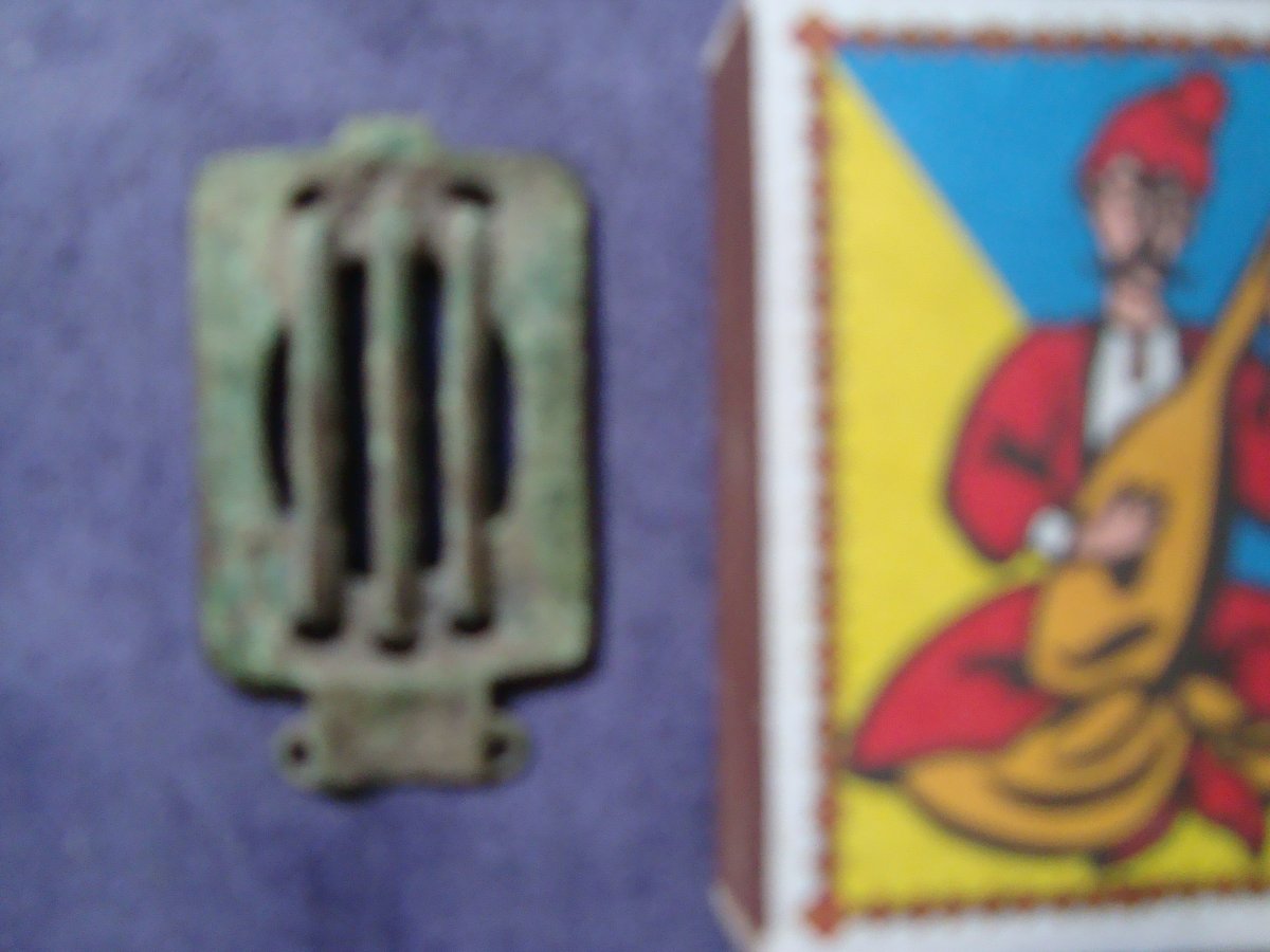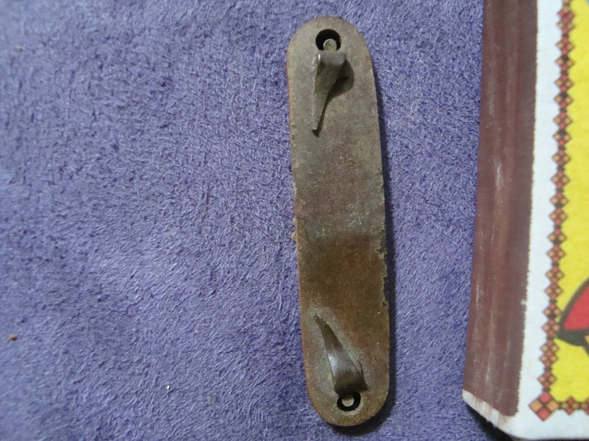 На фото 10 просматривается выбитая на тыльной стороне находки надпись "АРТ. МЕБ...", т.е. это скорее всего мебельная фурнитура артельного производства типа вислой ручки, например, выдвижного ящика шкафа/комода/тумбочки/письменного стола. Честь имею!