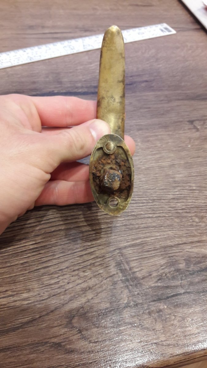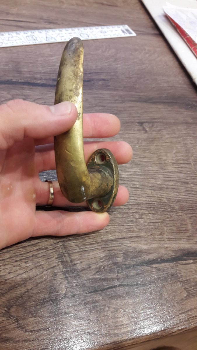 Доброго всем. Сегодня на лесной дороге назвонилась такая ручка. Материал латунь. Очень и очень увесистая. Клейм нет. Подскажите где она могла применятся. С уважением