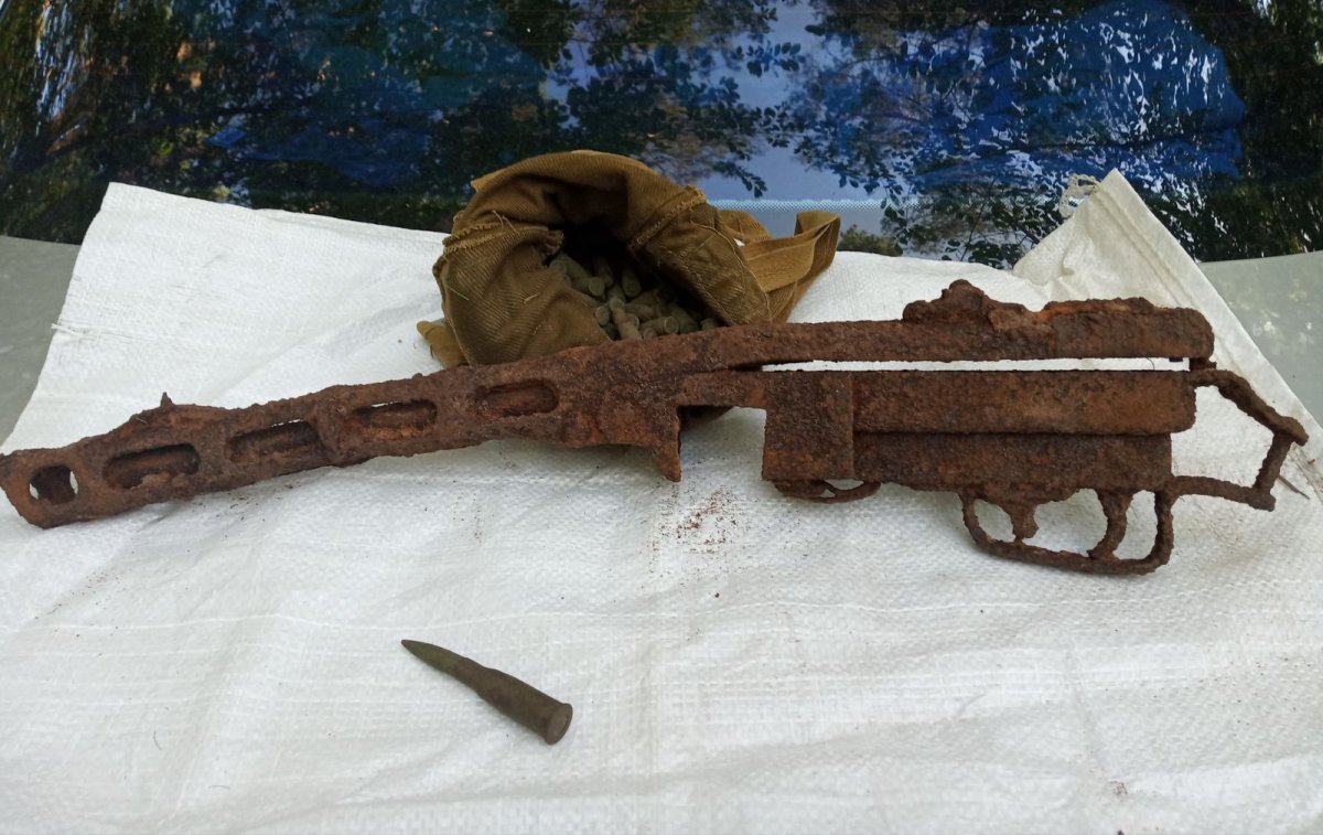 Два стакана советских зенитных шрапнельных снарядов 76 мм (стержневая шрапнель). Гильза 152 мм советская.