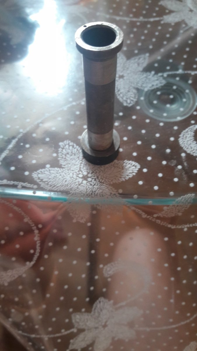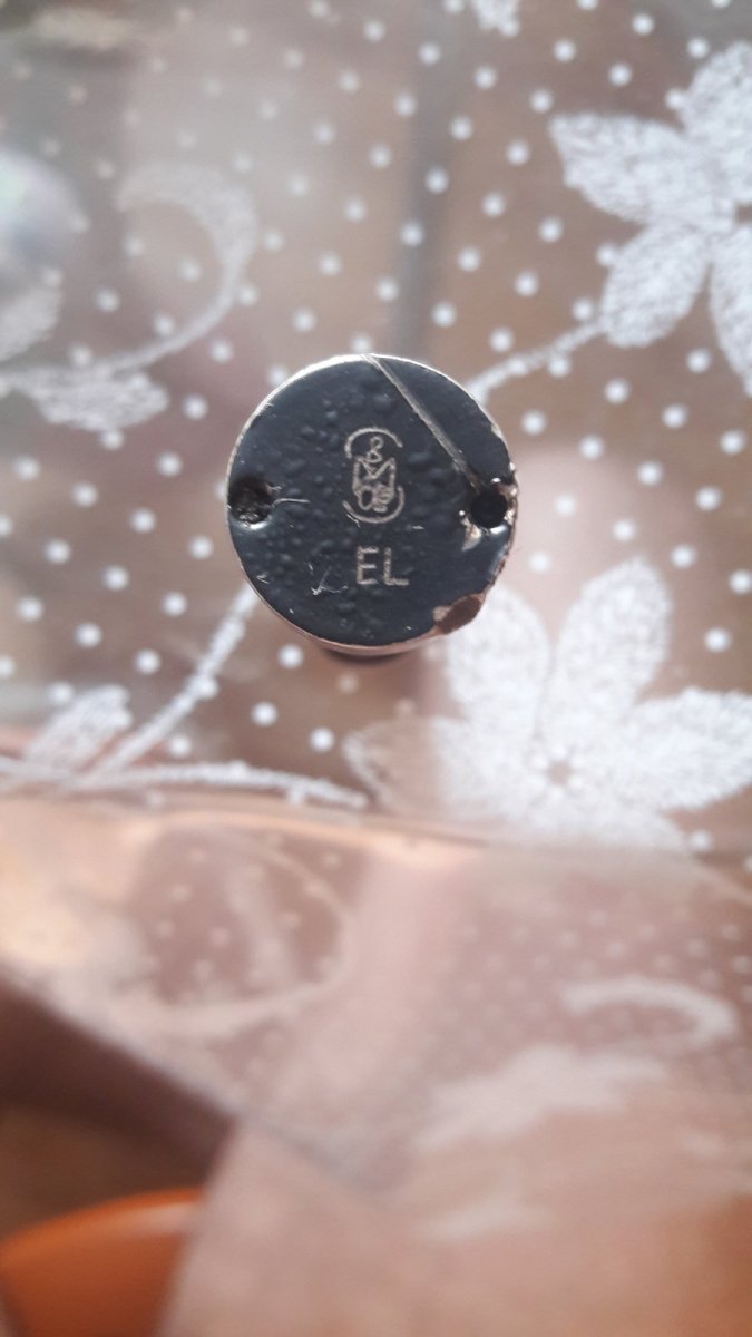 Клеймо загадочное. Покрашено чёрной краской, значит эта часть была наружу. Две выямки как бы для ключа что бы вкручивать, но на ней не видно резьбы.